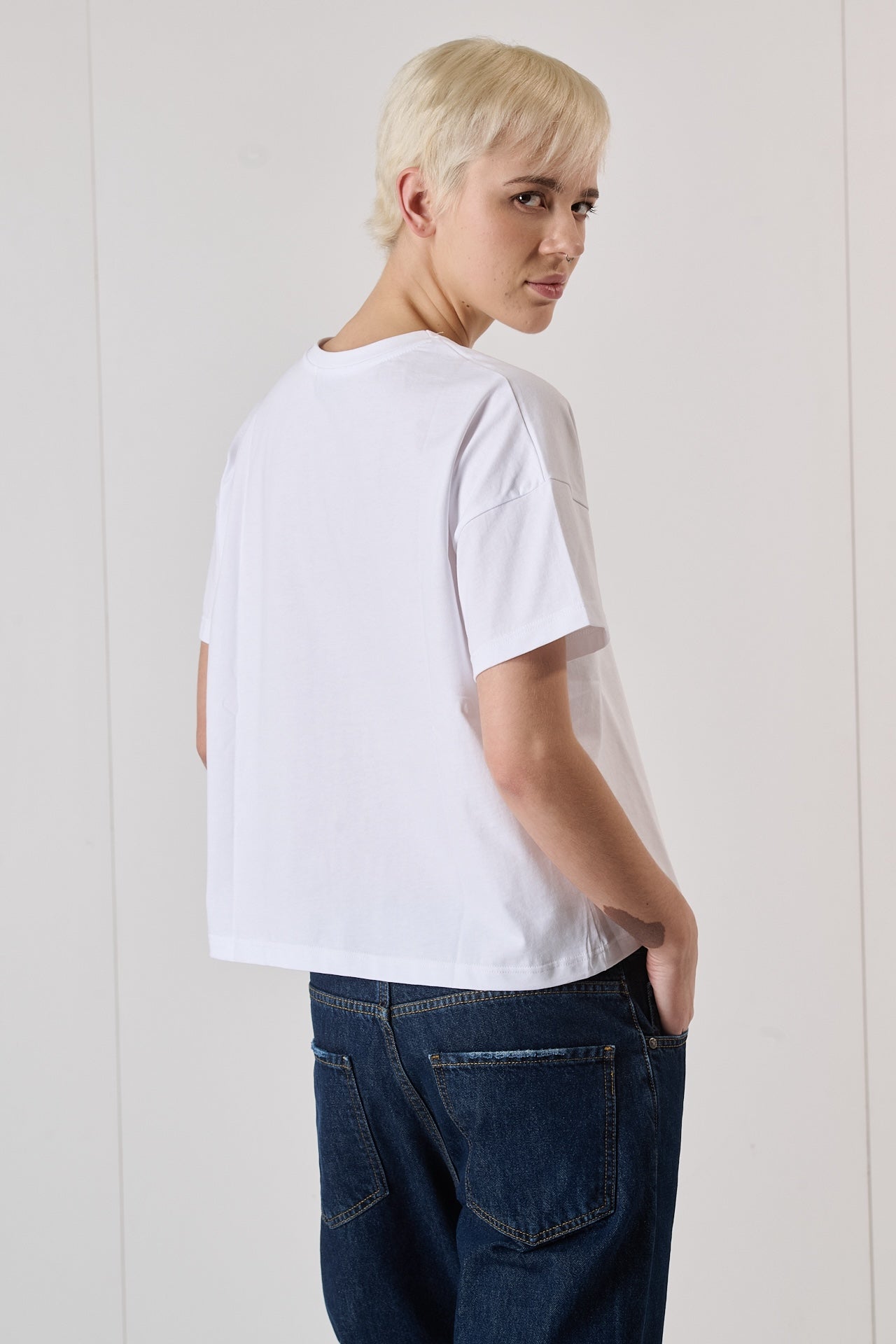Questa t-shirt con ricamo è pensata per te, che ami i dettagli unici e il design ricercato. Il ricamo crea un effetto tridimensionale che la rende irresistibile. Realizzata in 100% cotone, è morbida e versatile, perfetta per ogni occasione.