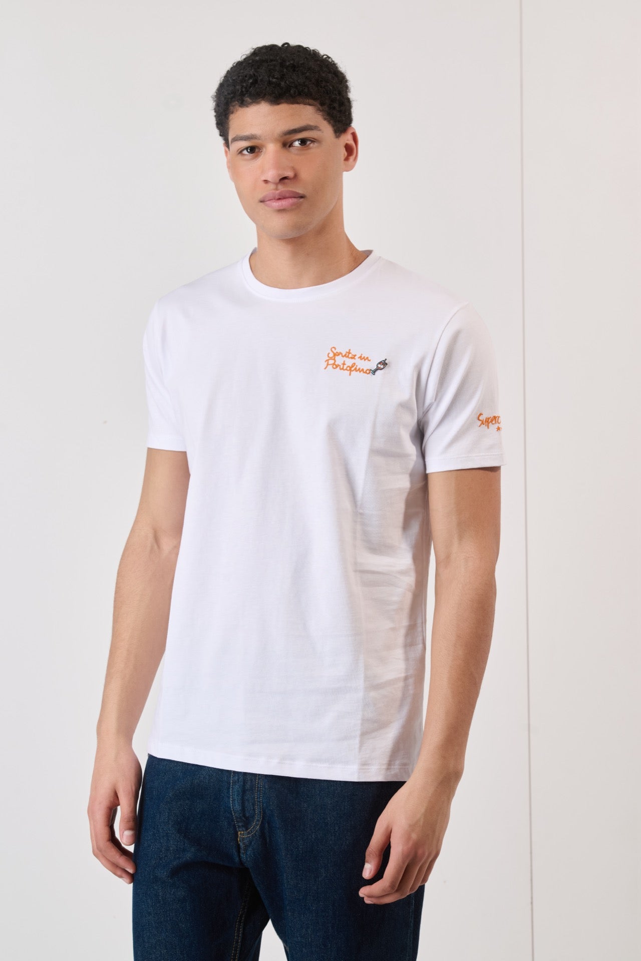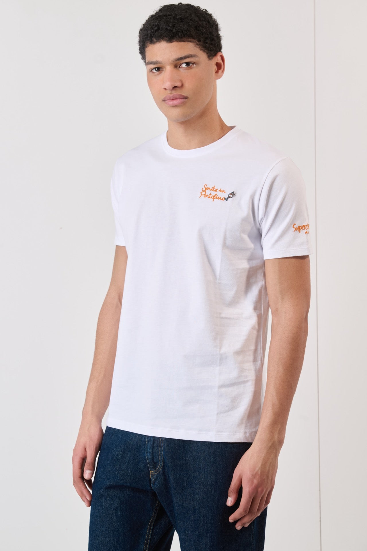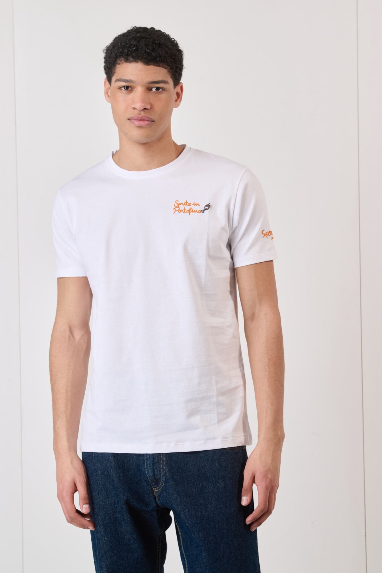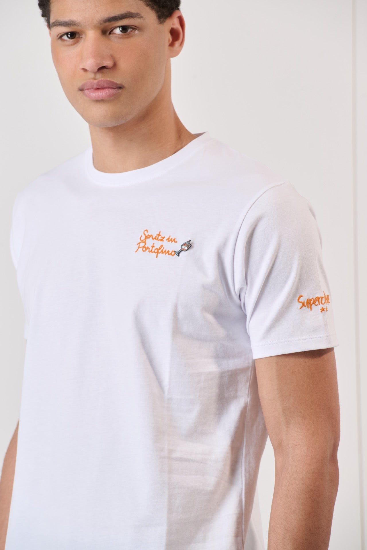 T-shirt Bianca con Ricamo e Spilla Spritz in Portofino