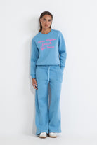Pantalone palazzo in felpa con elastico in vita e due tasche laterali.