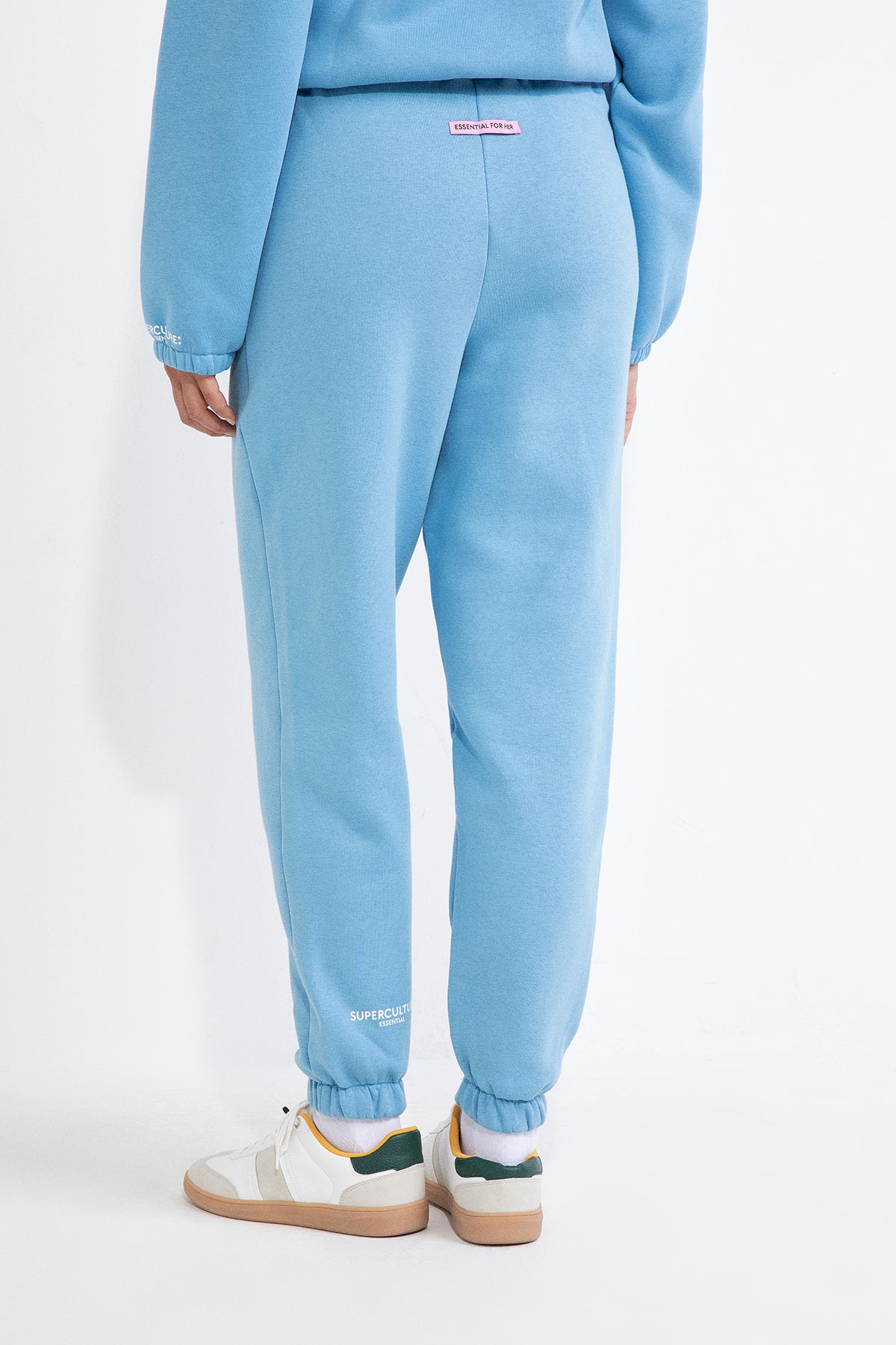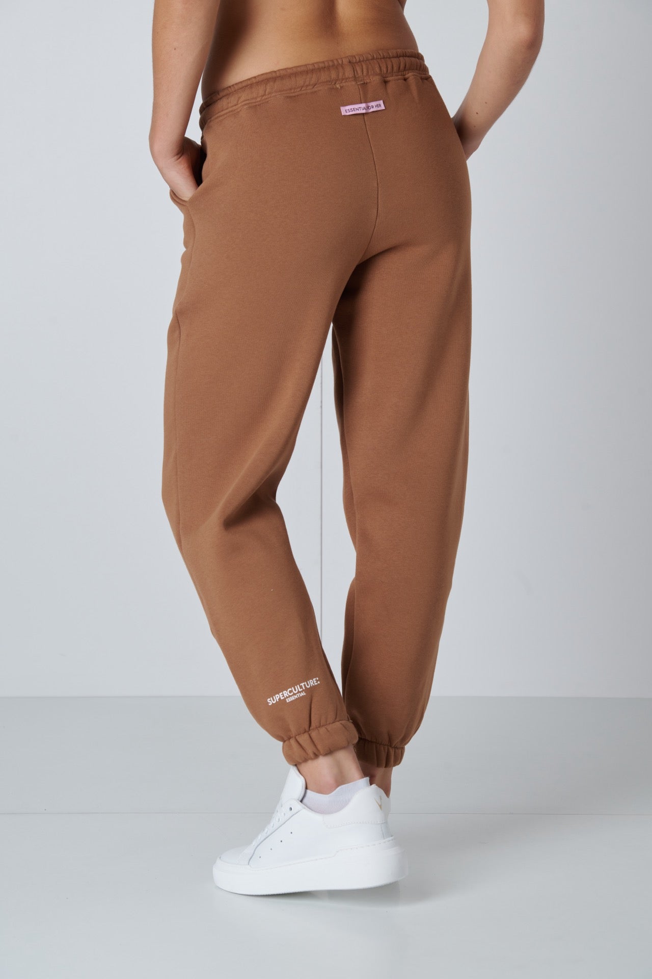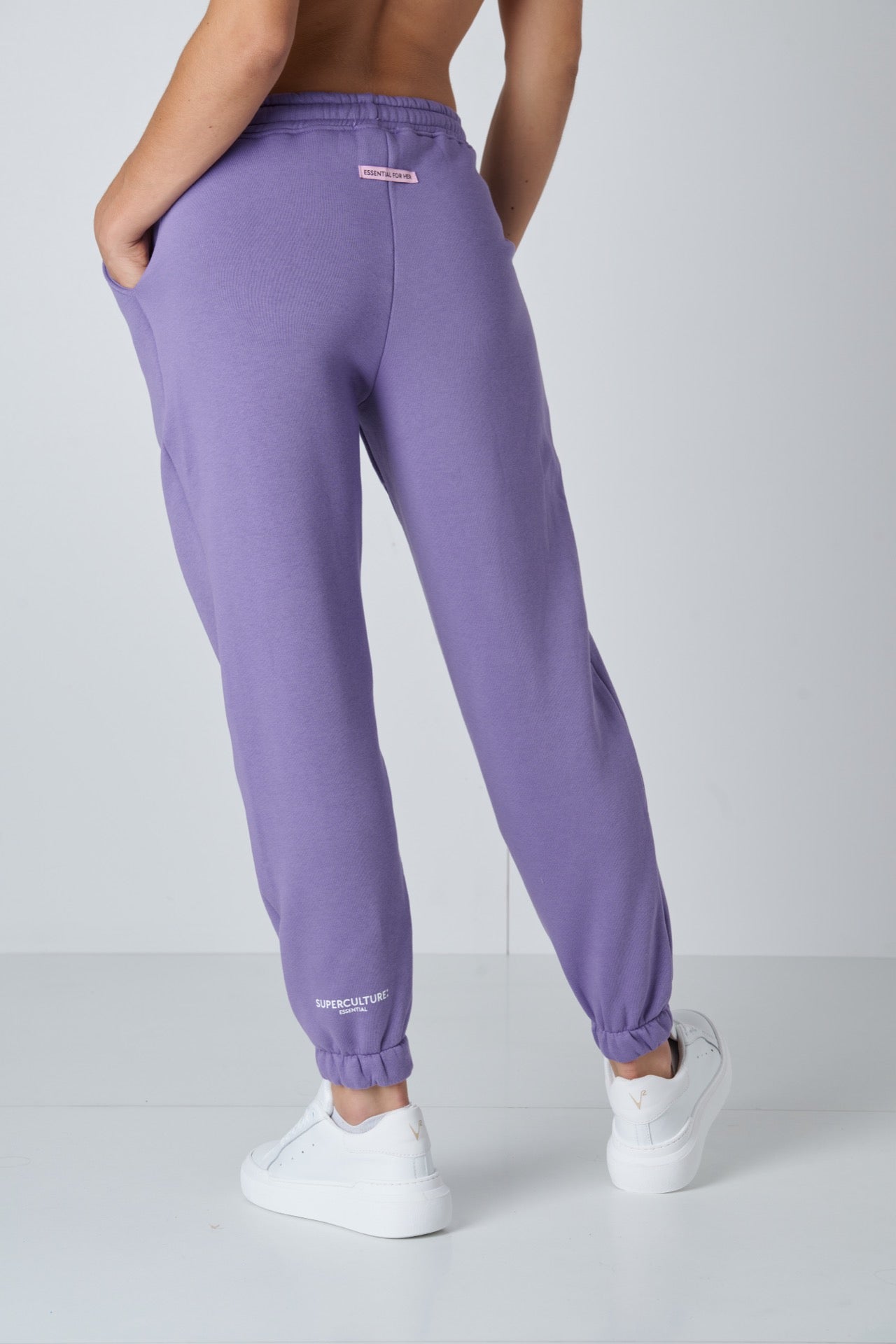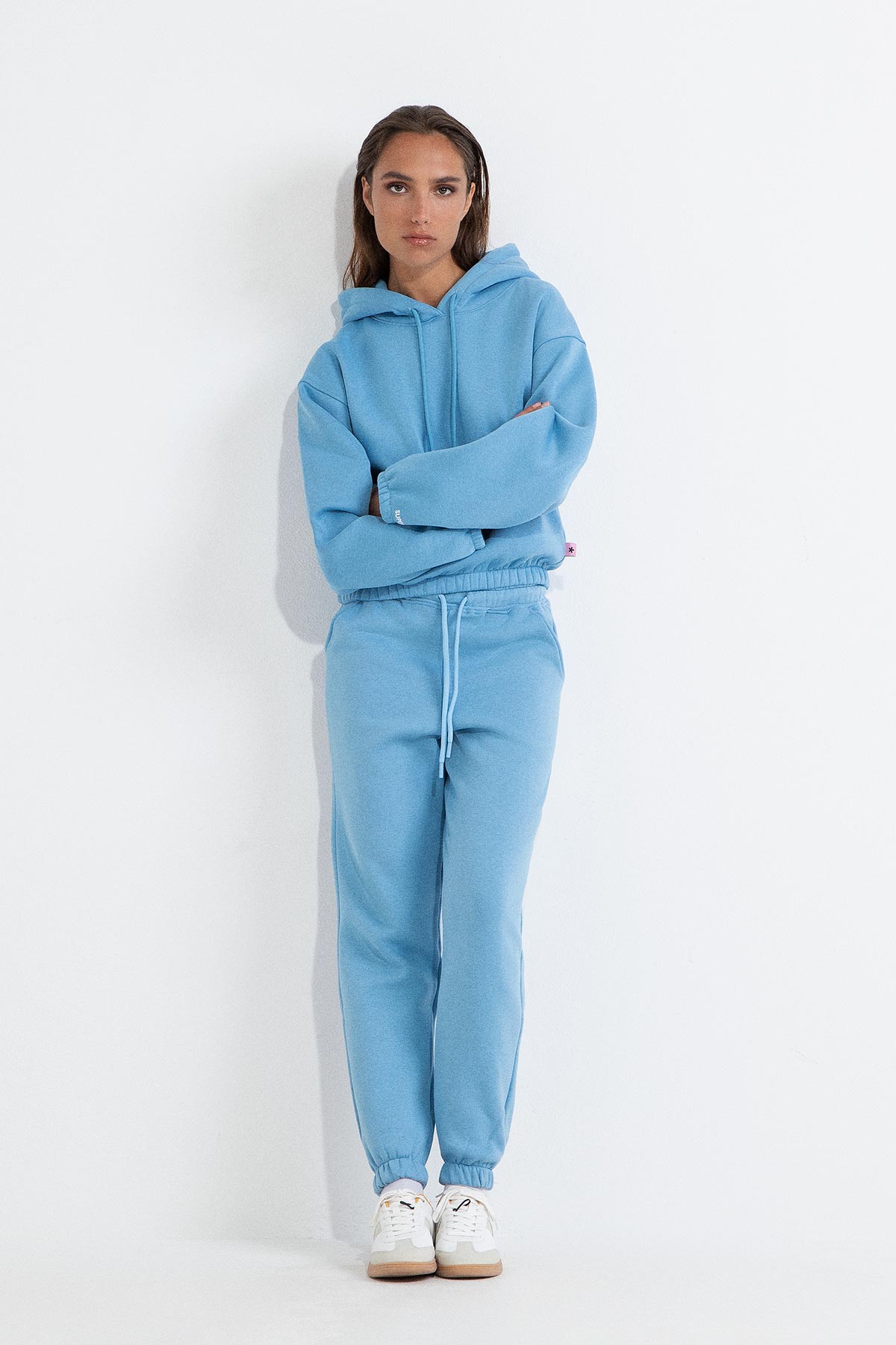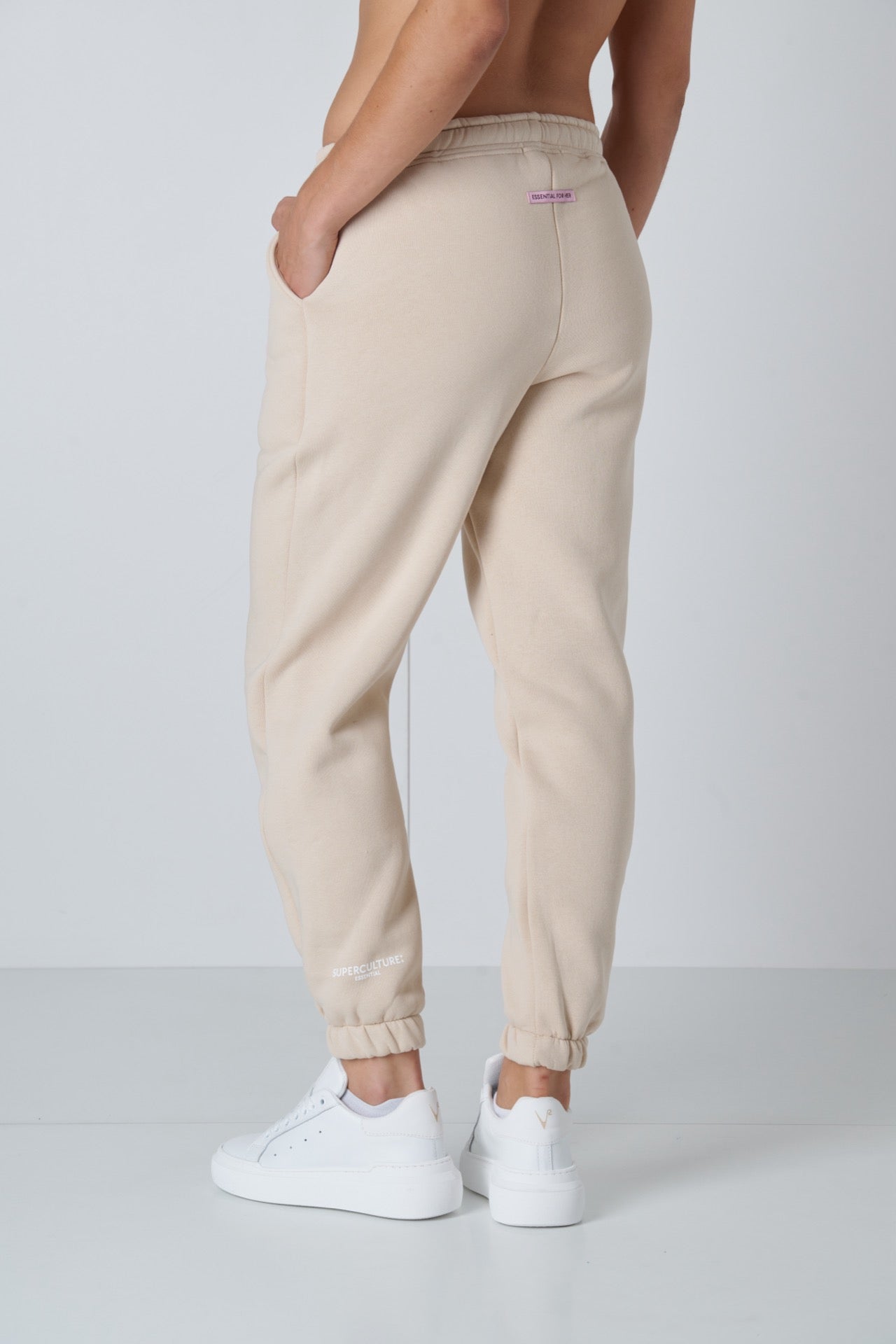 Pantalone in felpa con elastico in vita, due tasche laterali, tasca posteriore ed elastici alle caviglie.