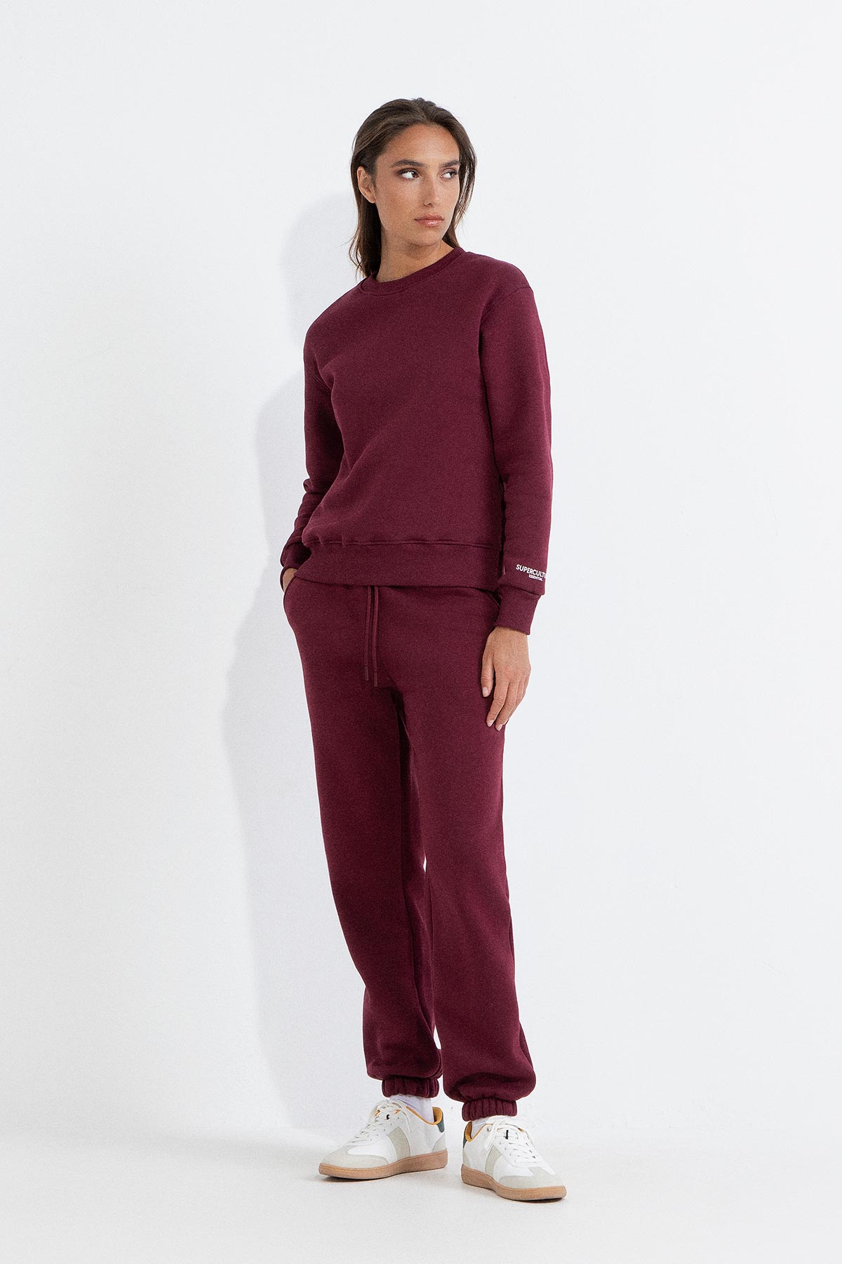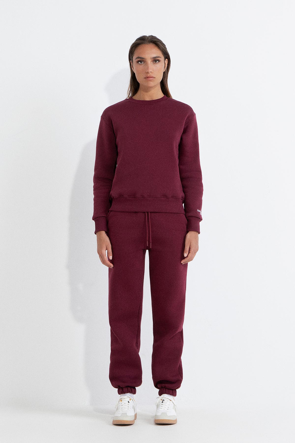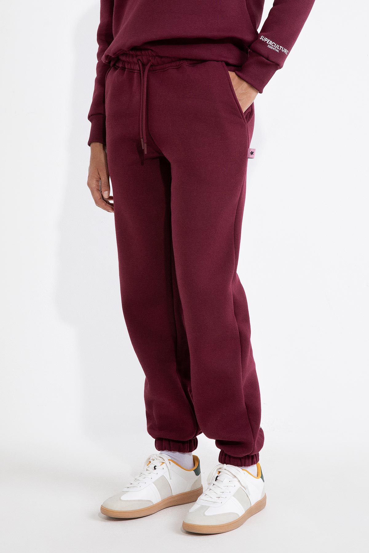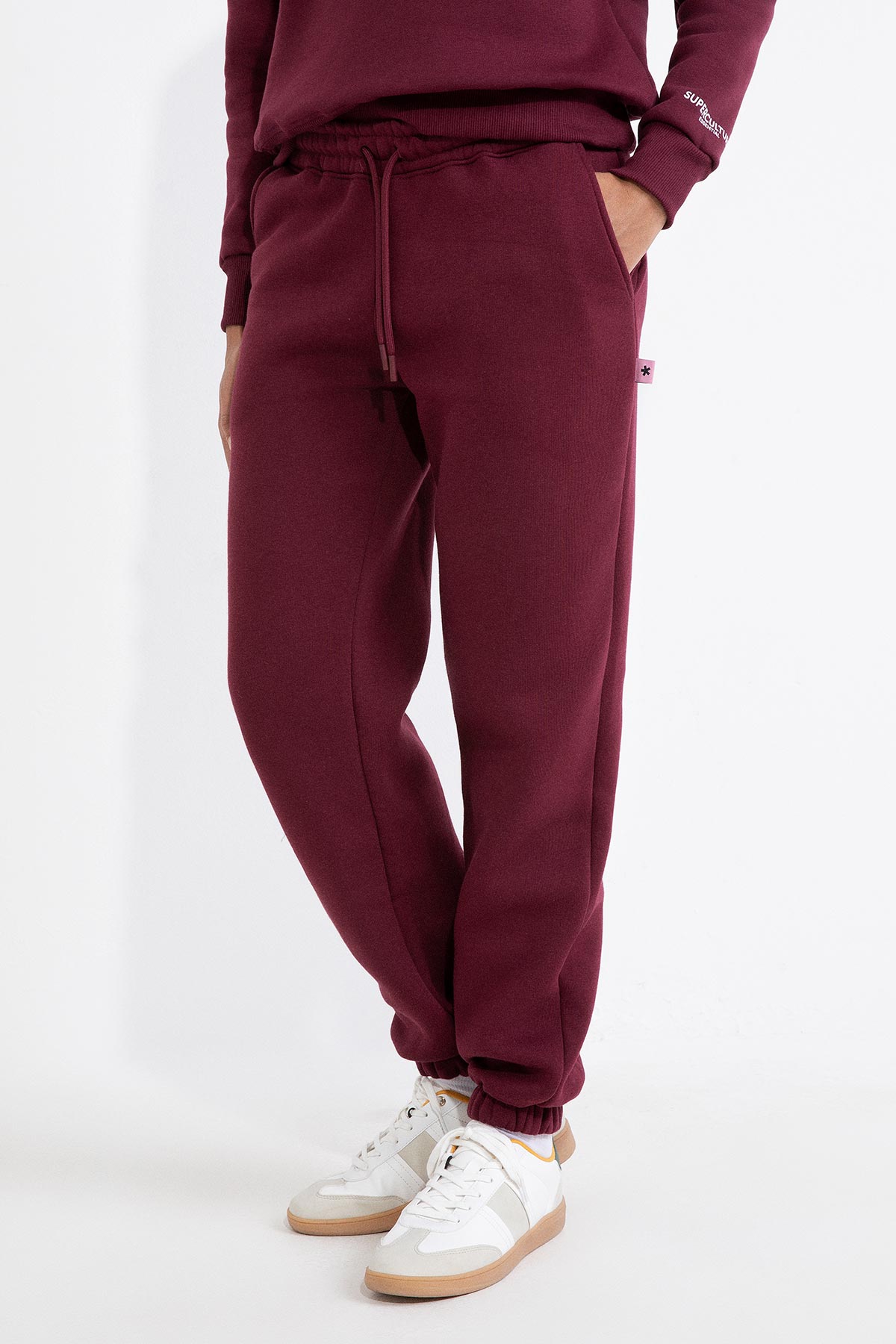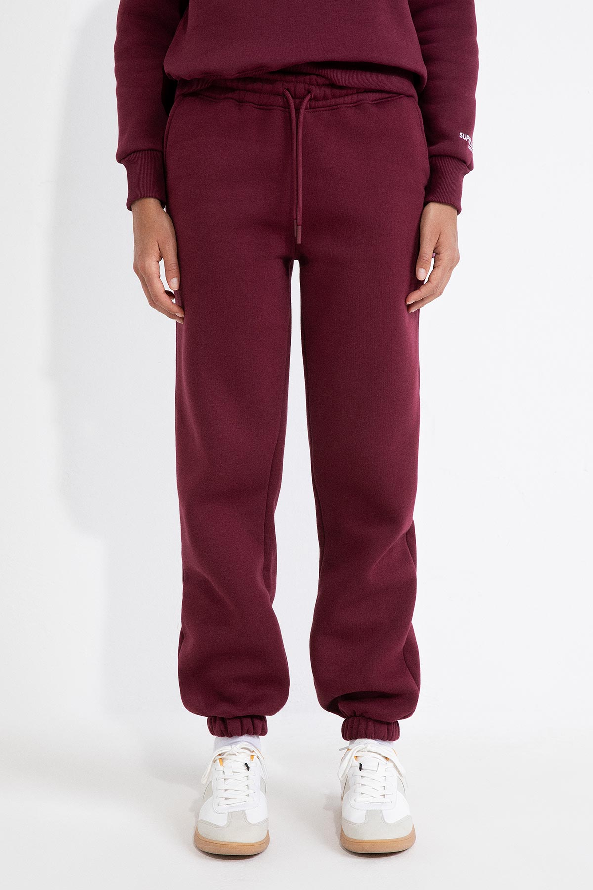 Pantalone in felpa con elastico in vita, due tasche laterali, tasca posteriore ed elastici alle caviglie.
