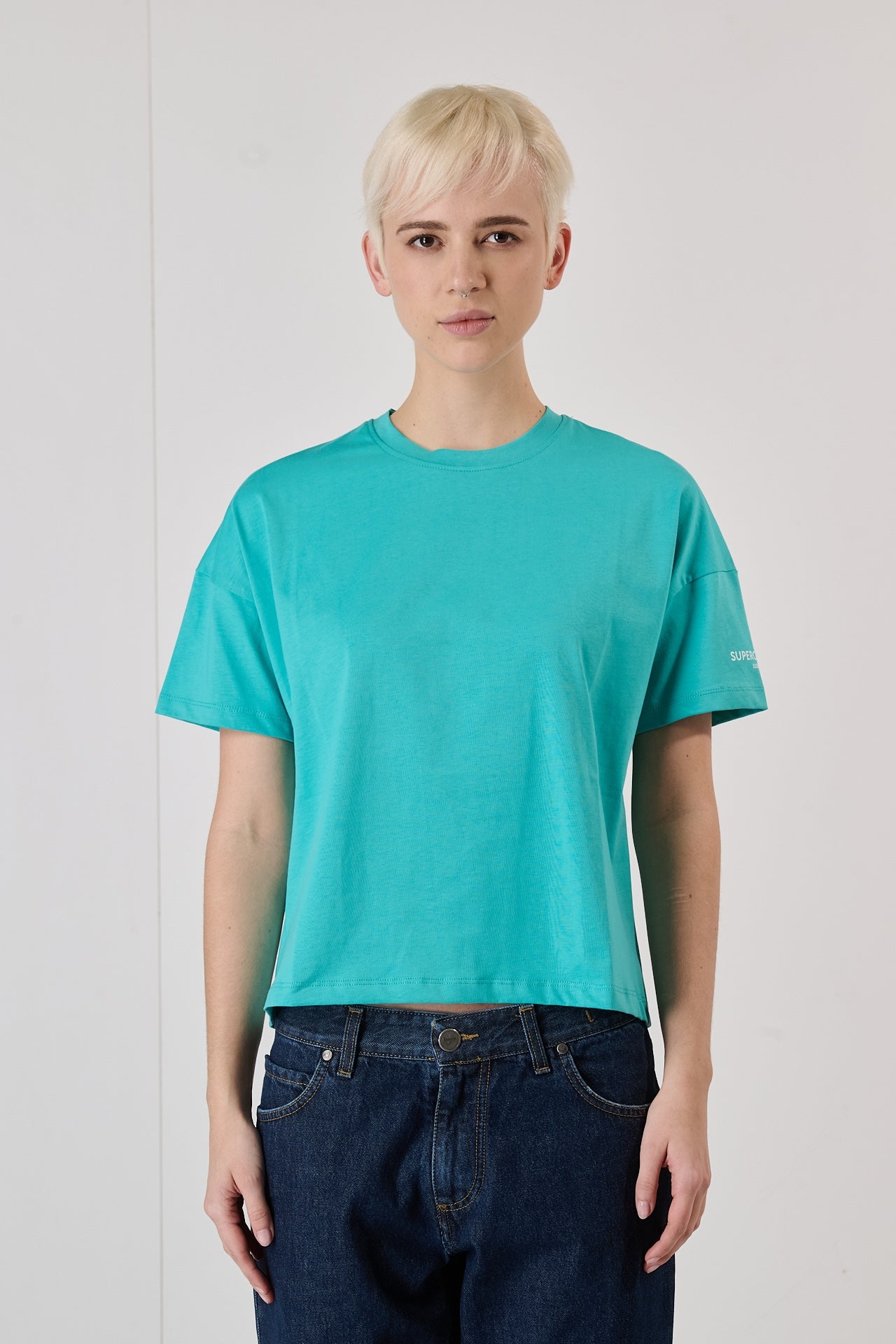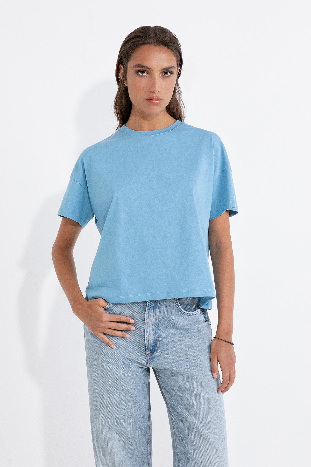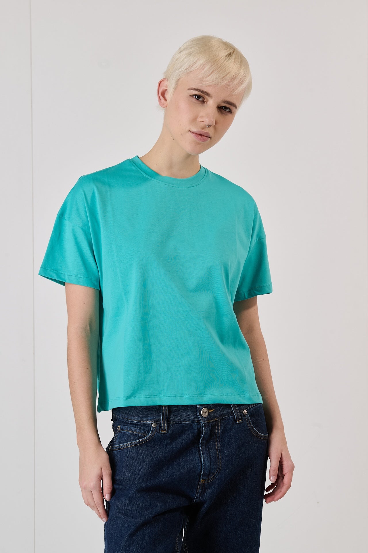 T-shirt essenziale, colorata, semplice e super confortevole, grazie alla sua composizione pregiata in 100% cotone.