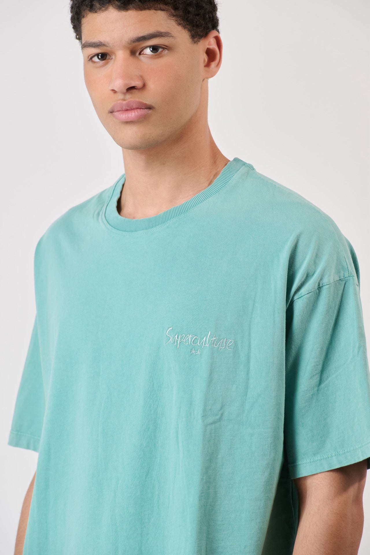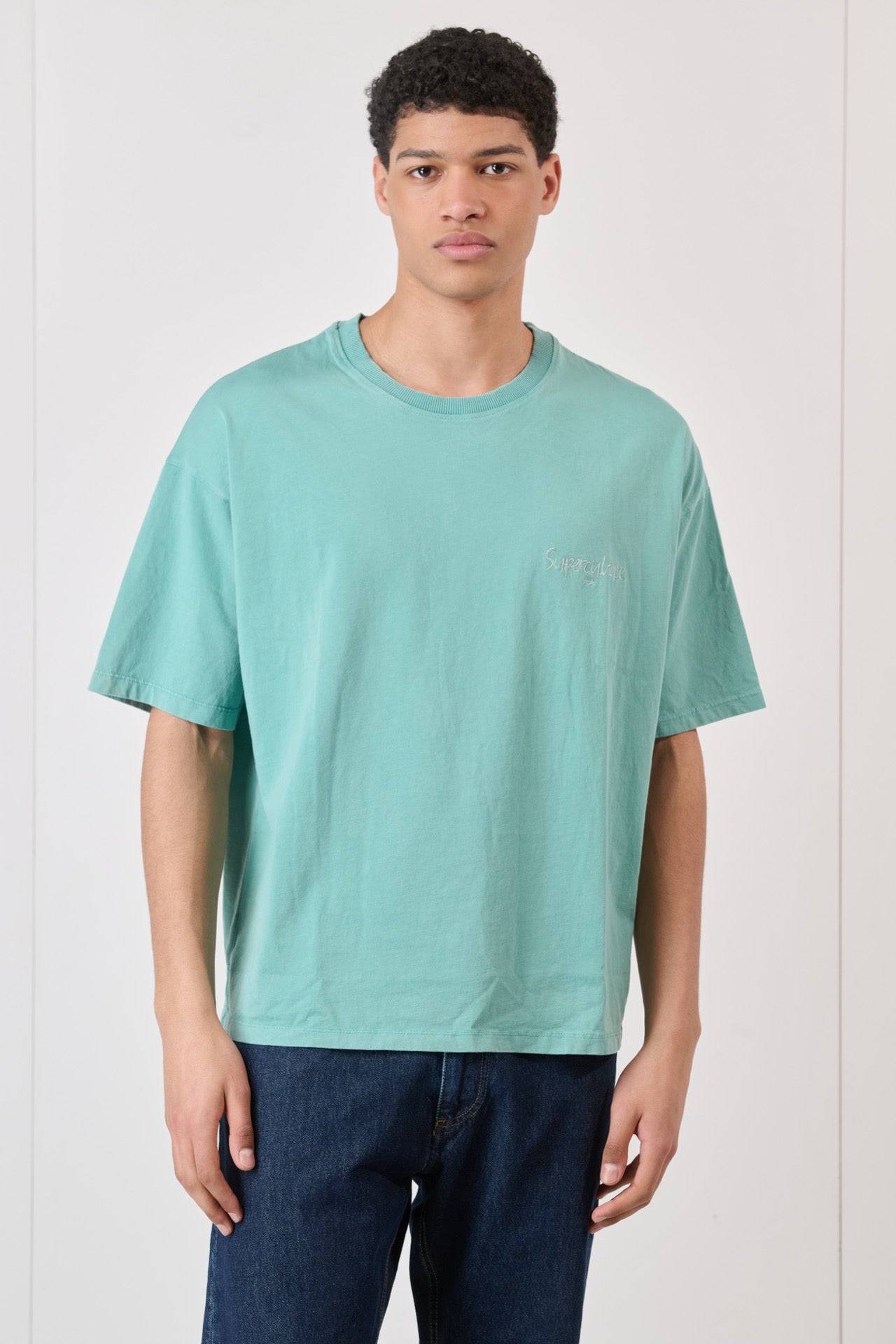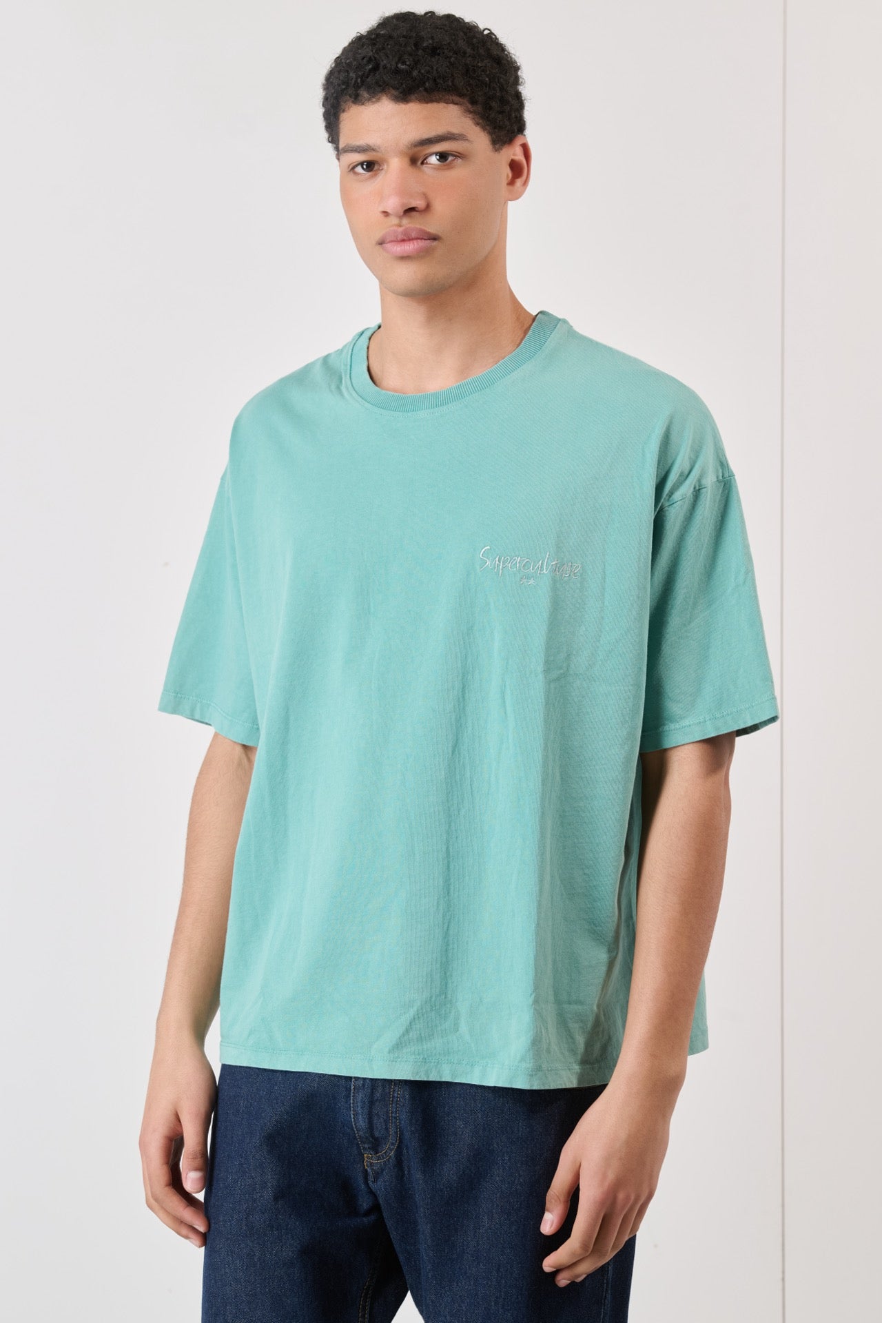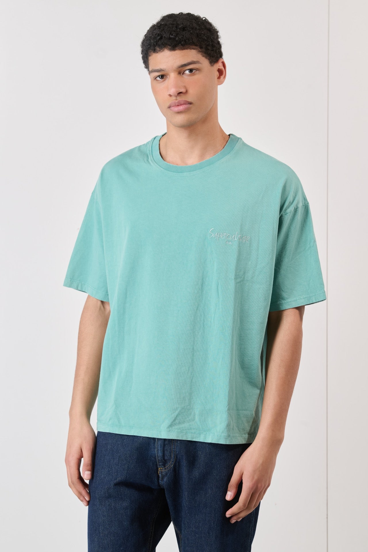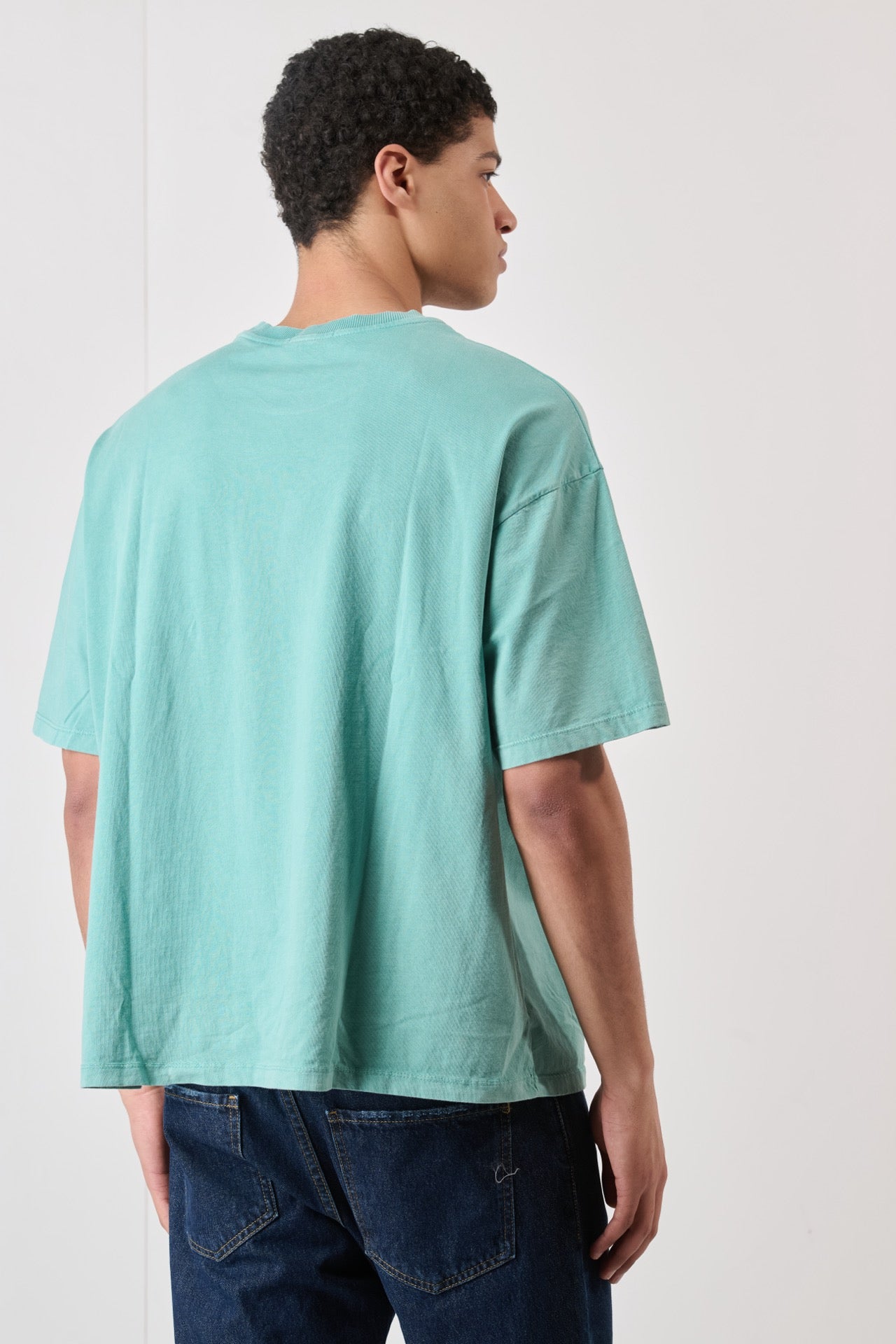 T-shirt Boxy Fit Acid Wash Verde con Ricamo