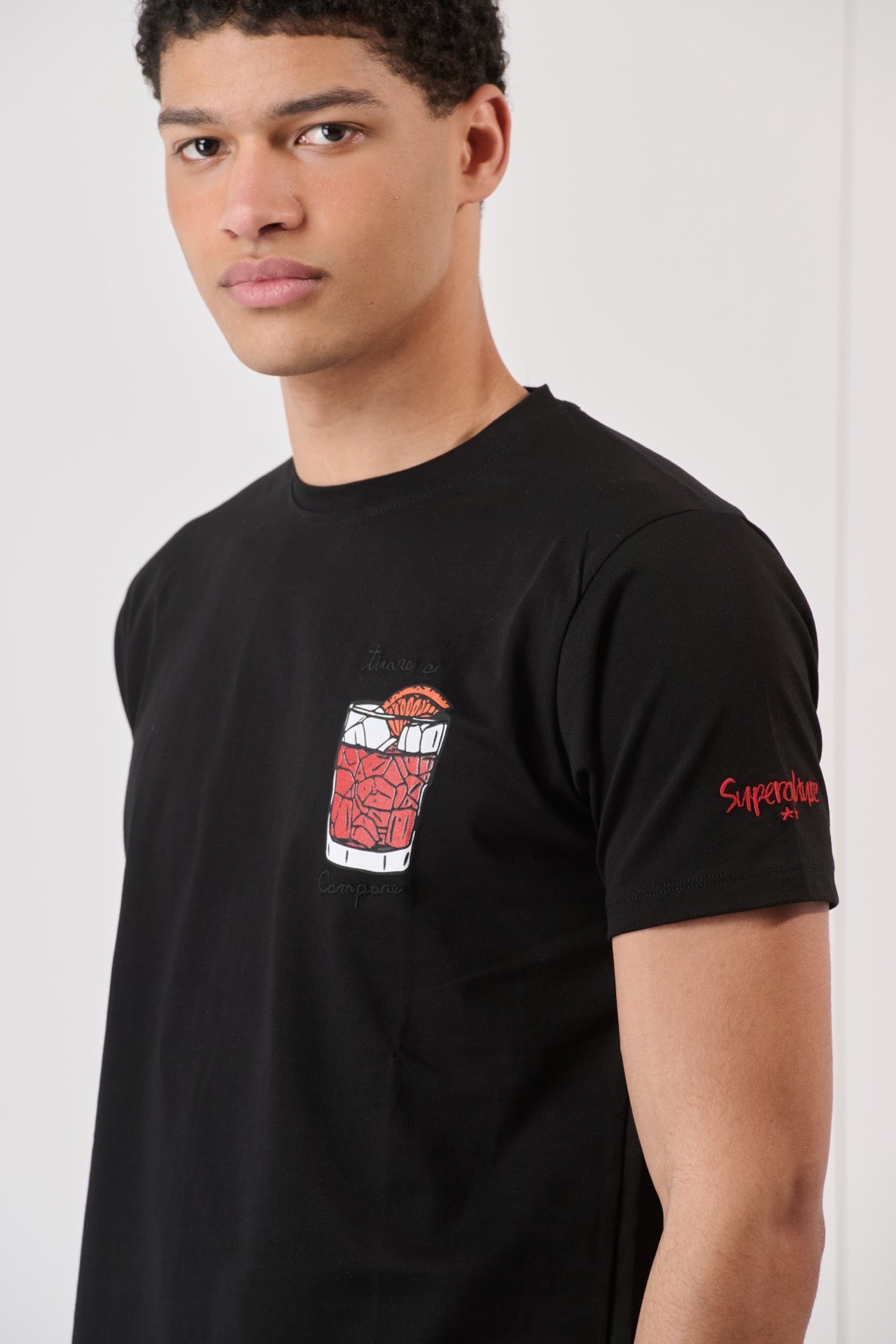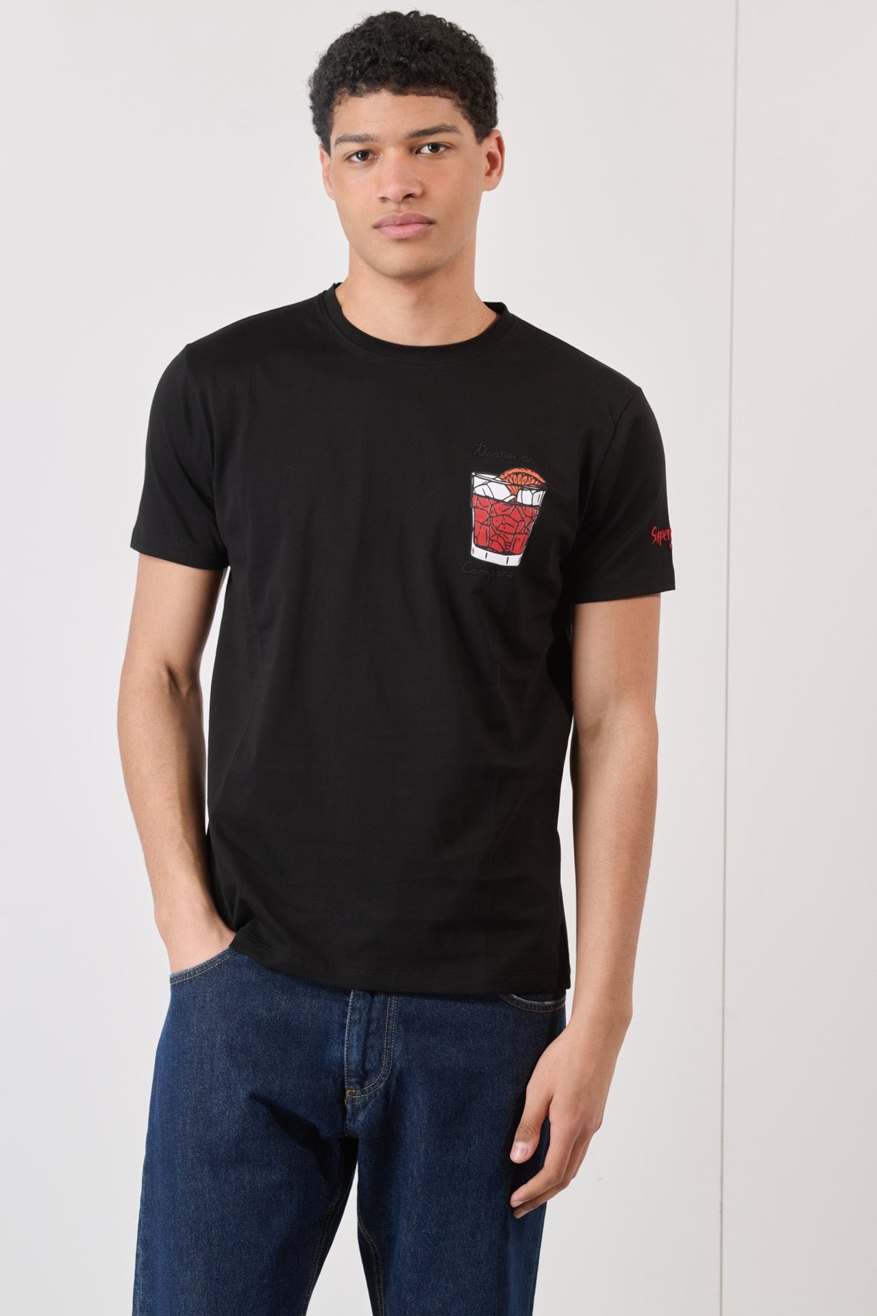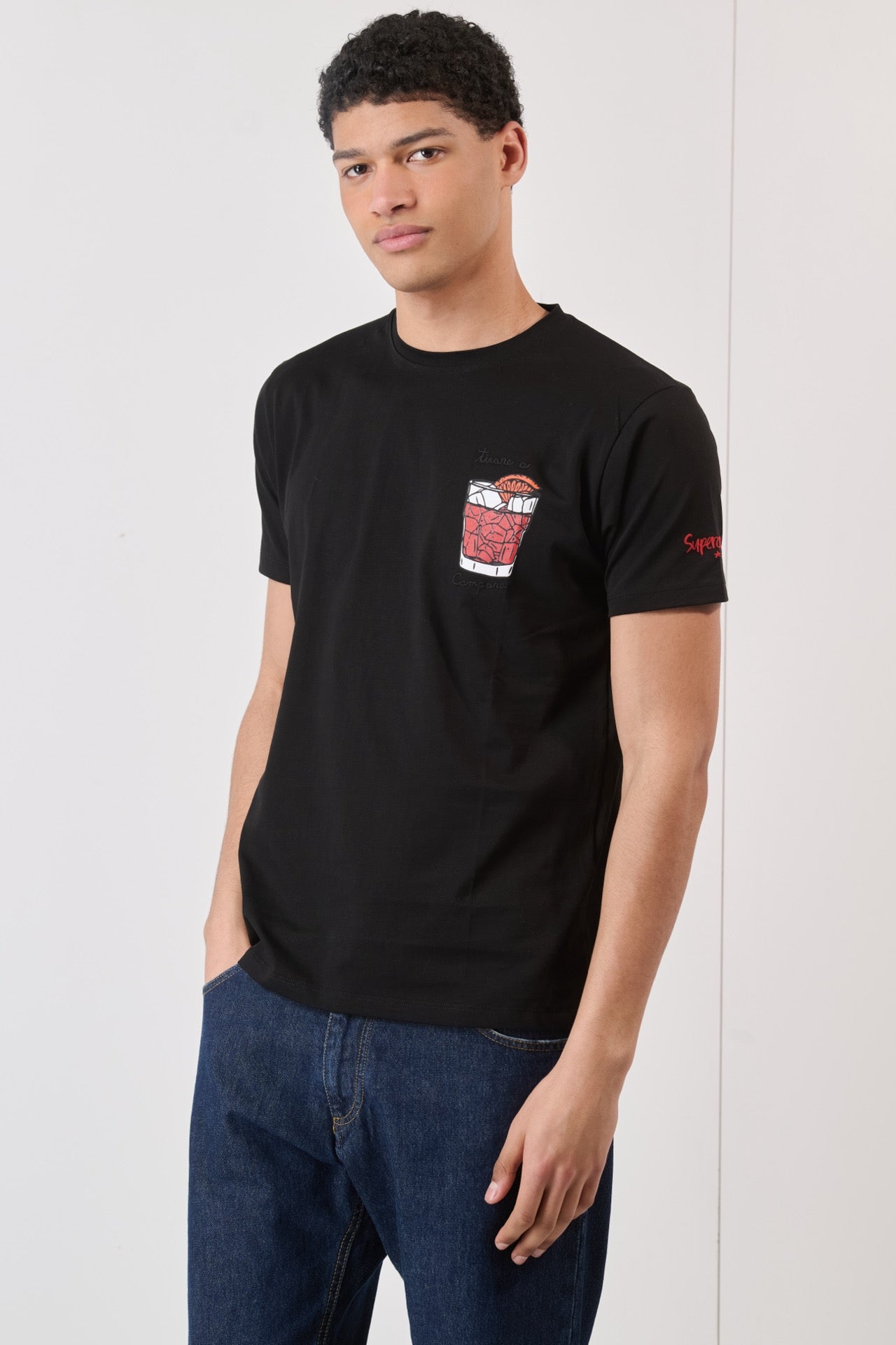 Questa t-shirt con stampa e ricamo Cocktail è pensata per chi ama i dettagli unici e il design ricercato. Il mix tra stampa e ricamo crea un effetto tridimensionale che la rende irresistibile. Realizzata in 100% cotone, è morbida e versatile, perfetta per ogni occasione.