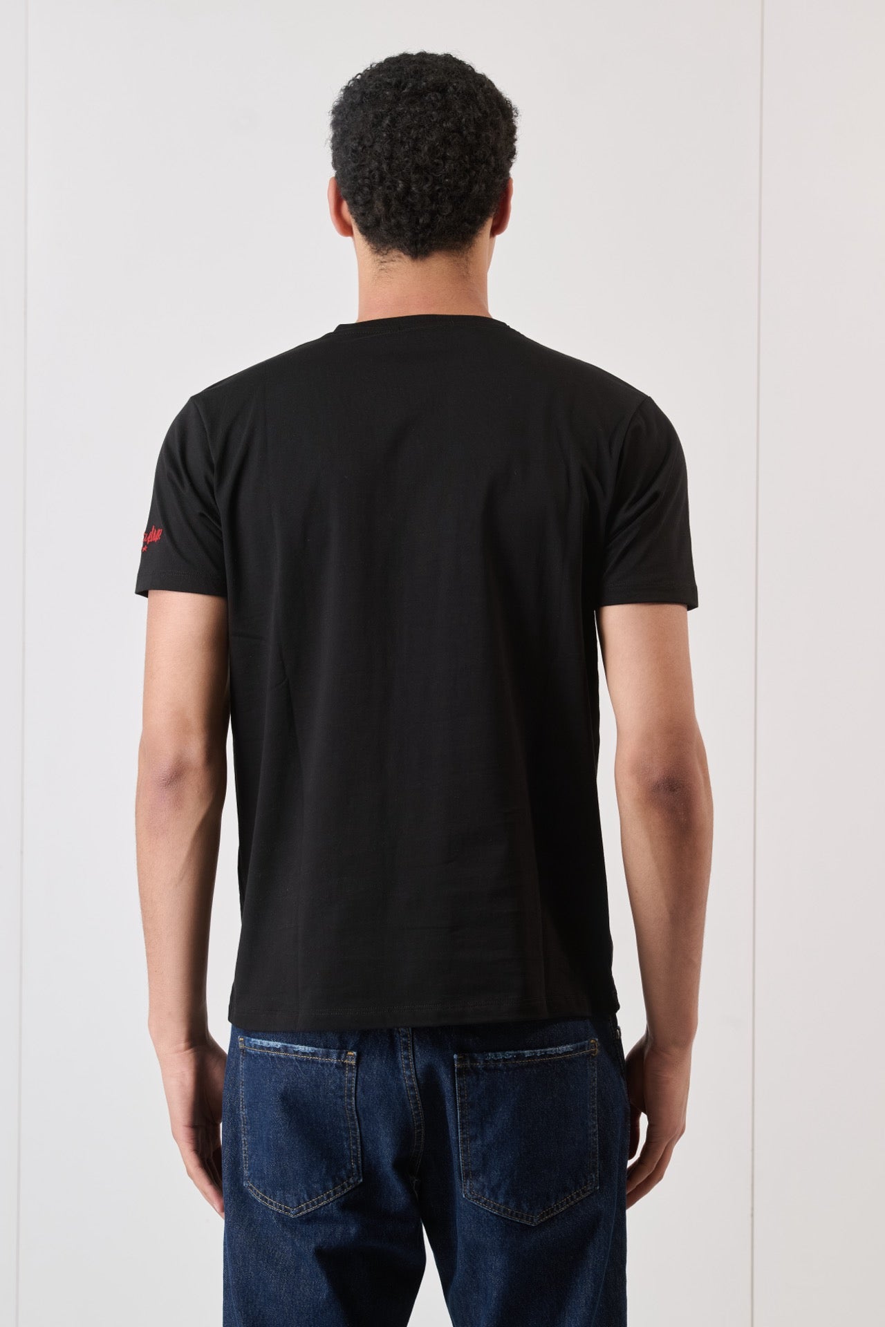 T-shirt Nera con Stampa e Ricamo Tirare a Campare