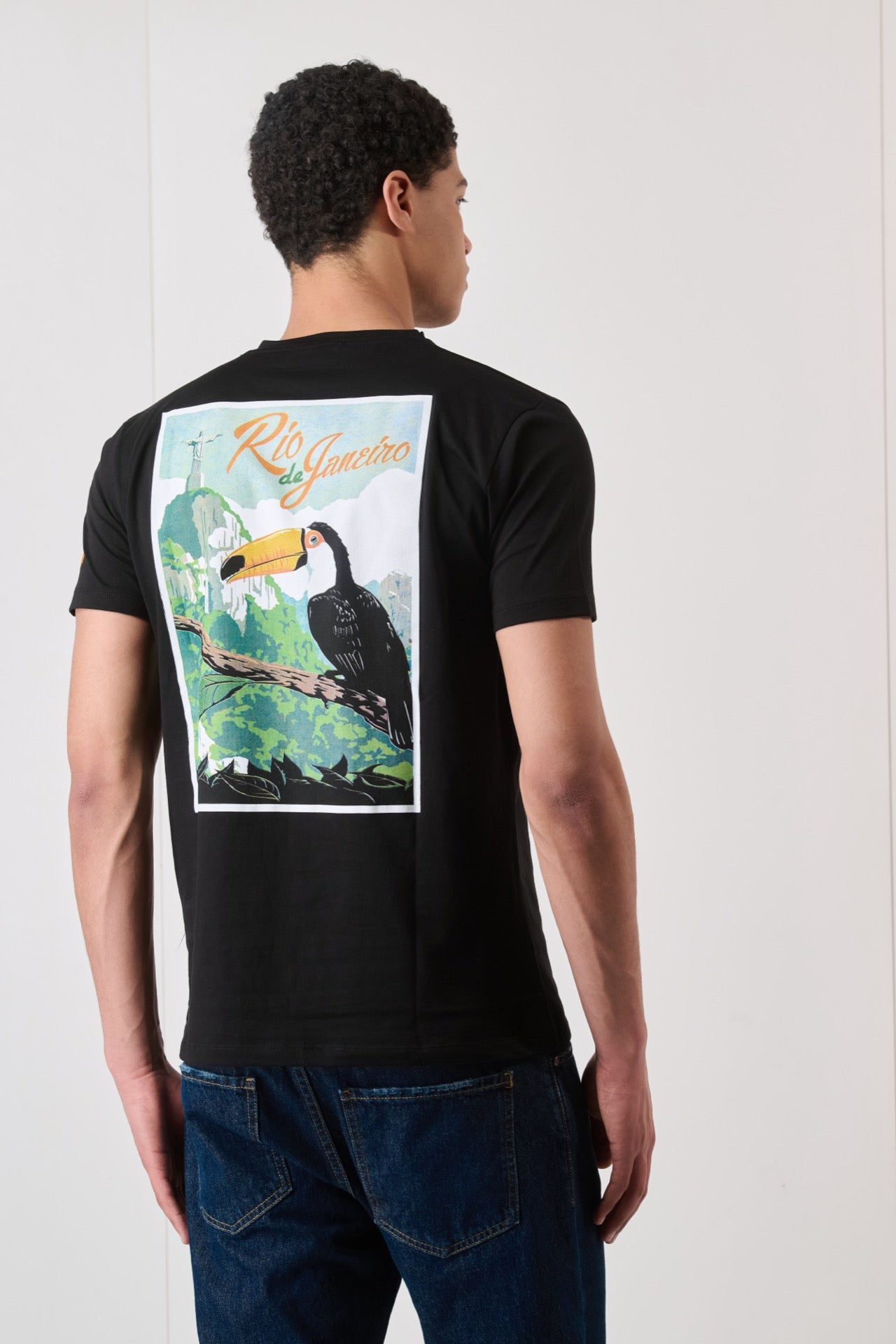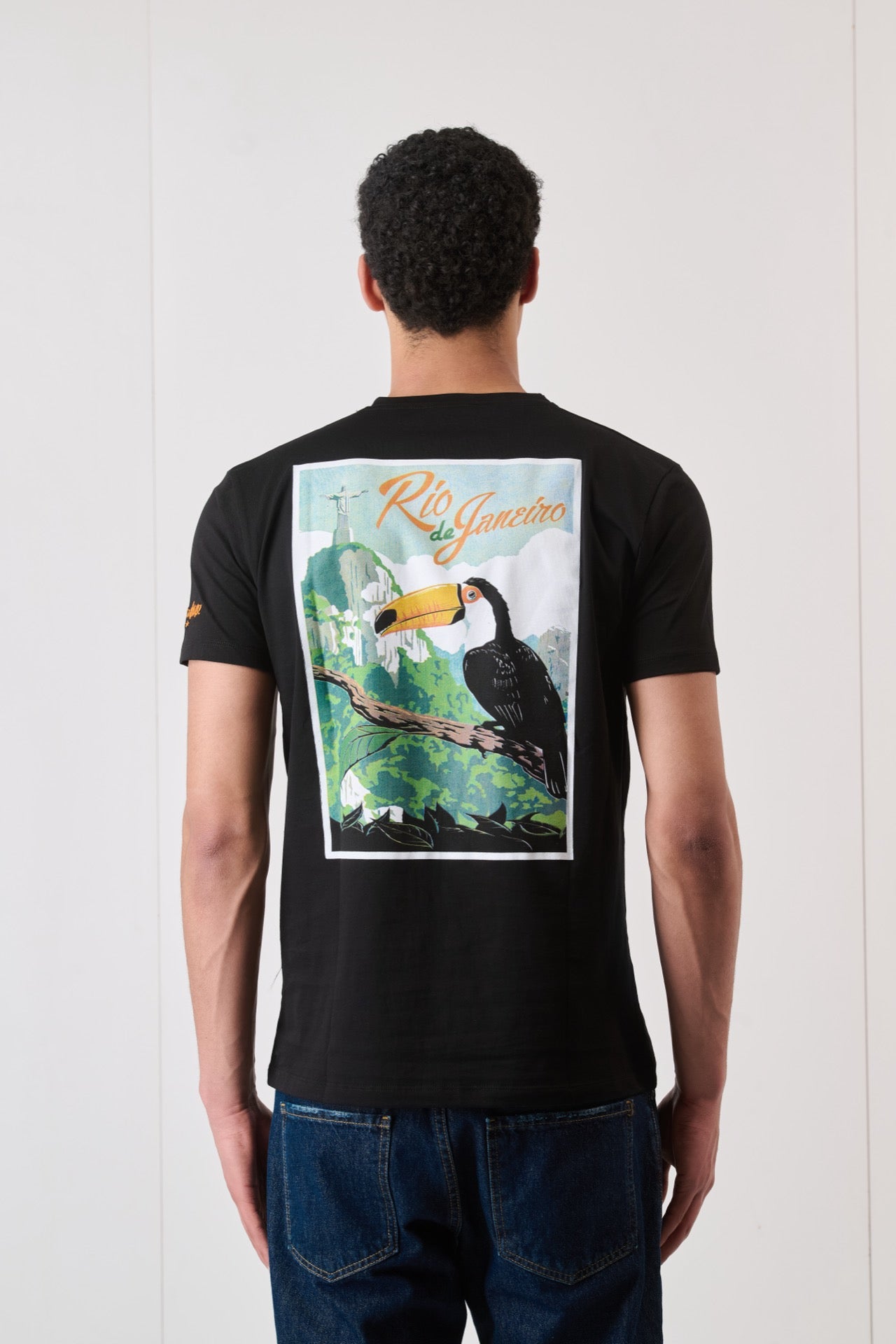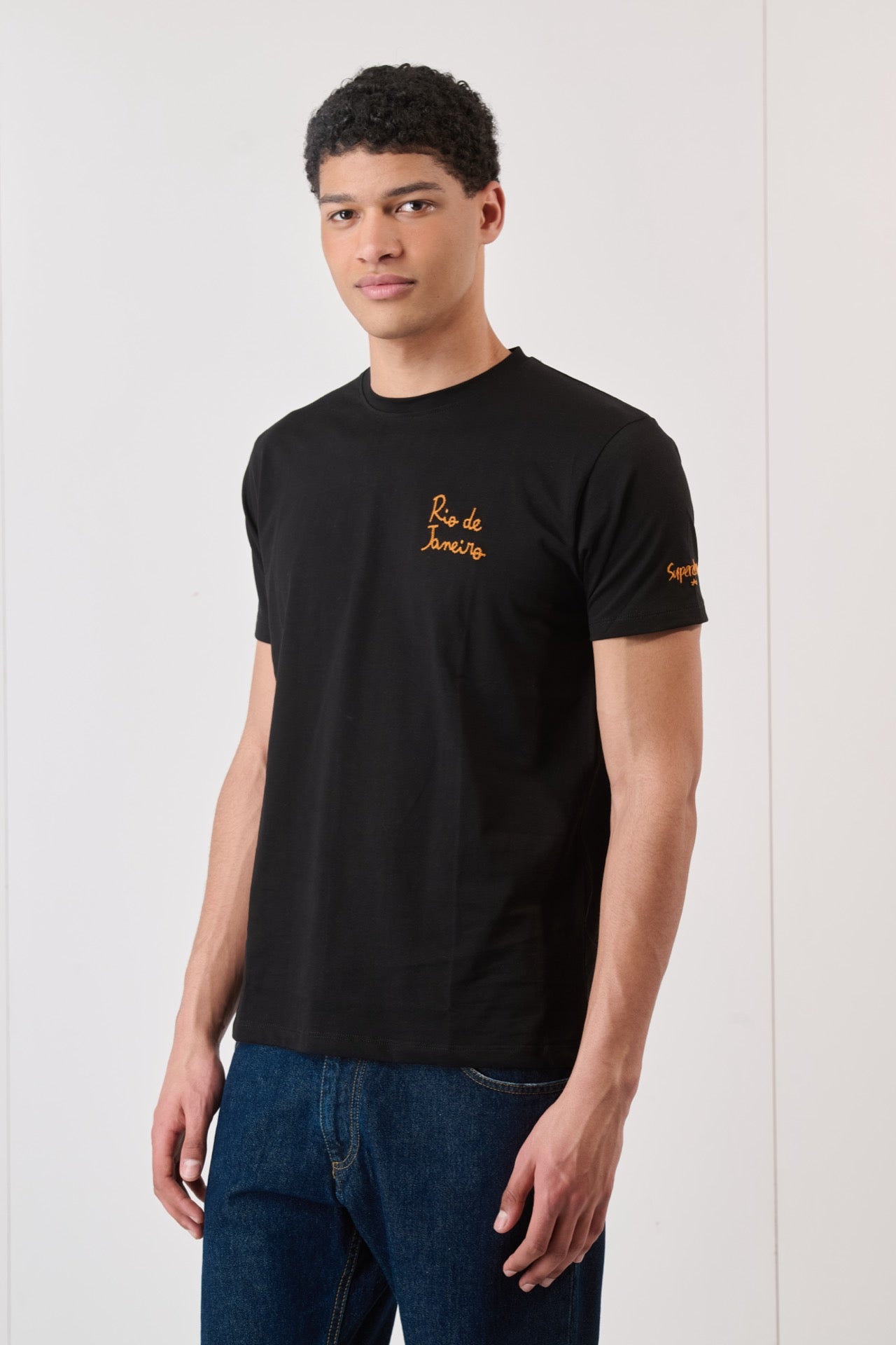 T-shirt Nera con ricamo frontale e stampa posteriore Rio De Janeiro