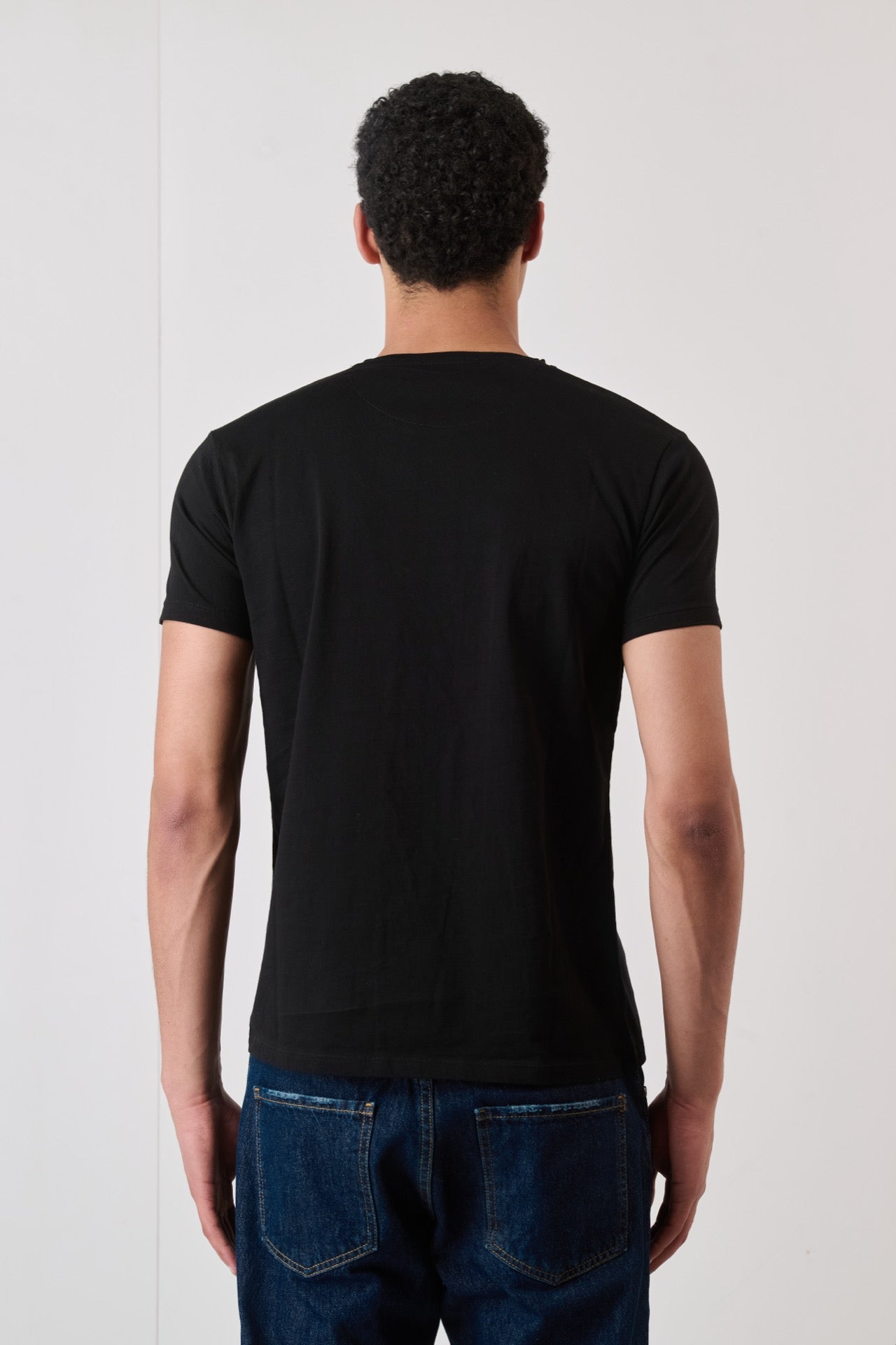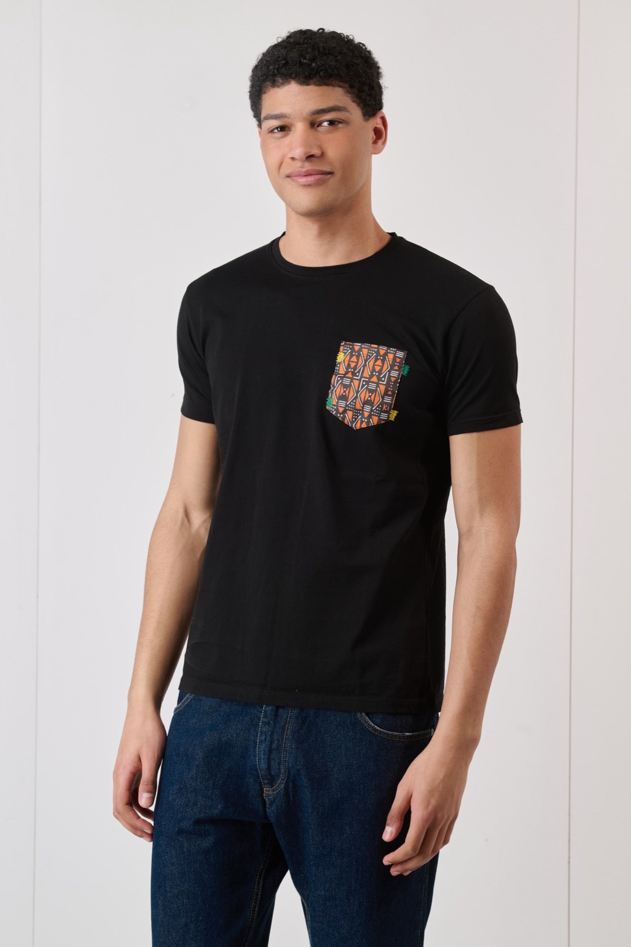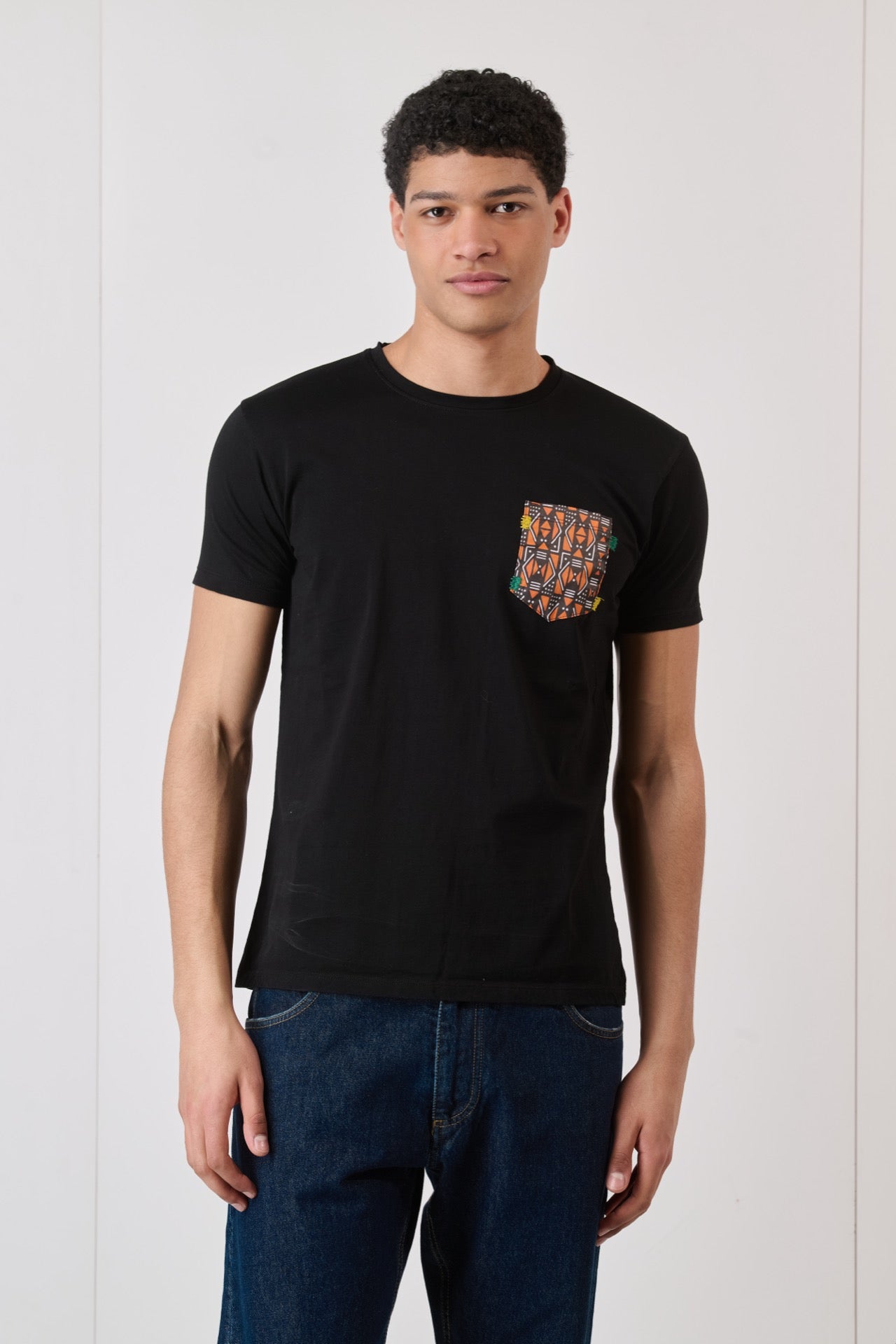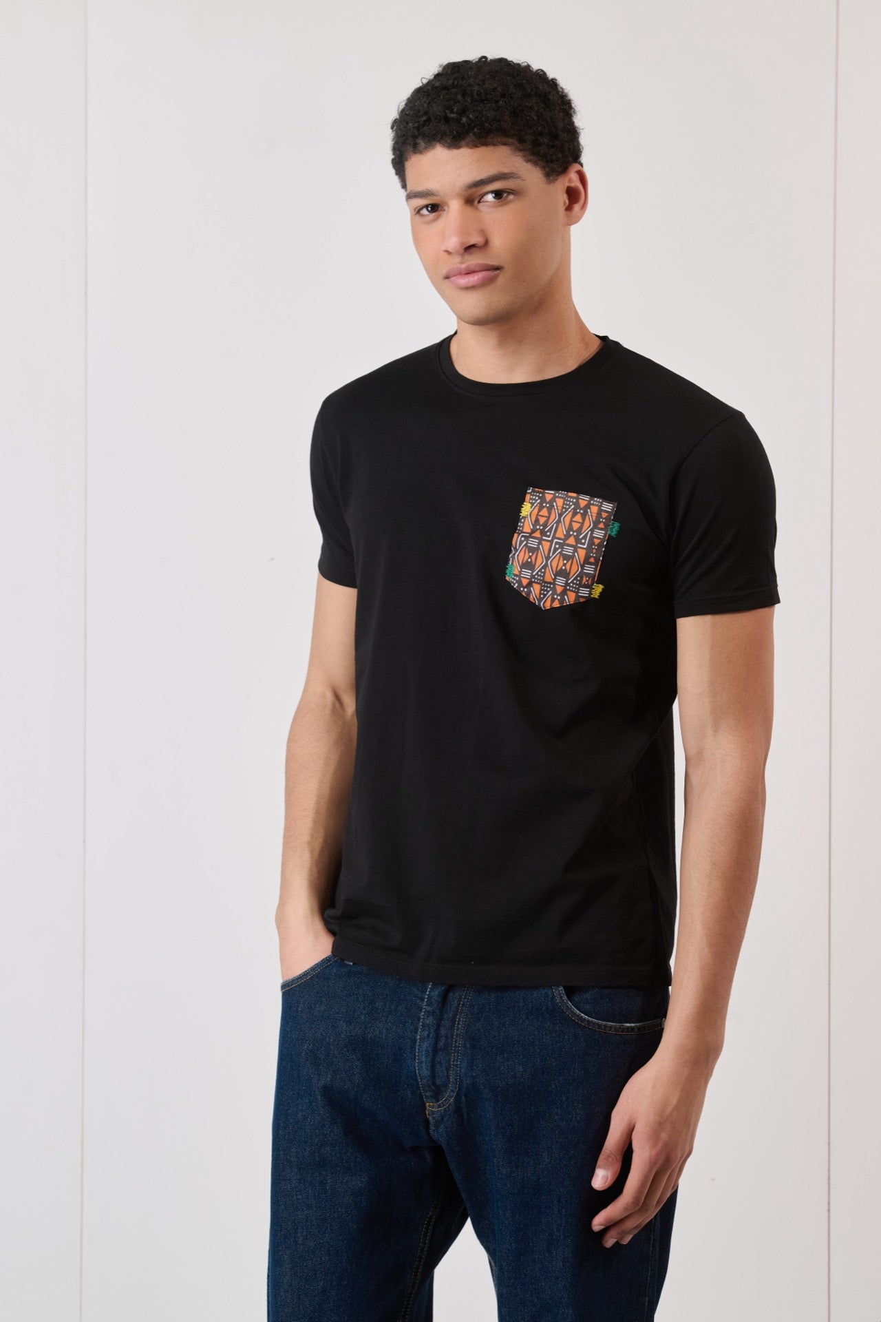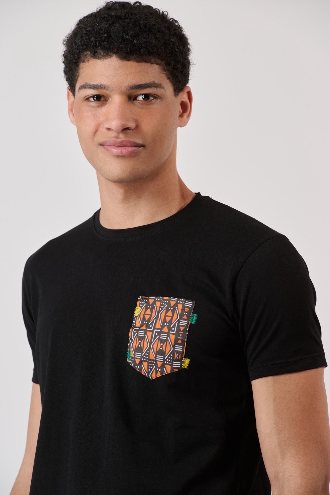 T-shirt Nera con ricami e Taschino in fantasia Azteca