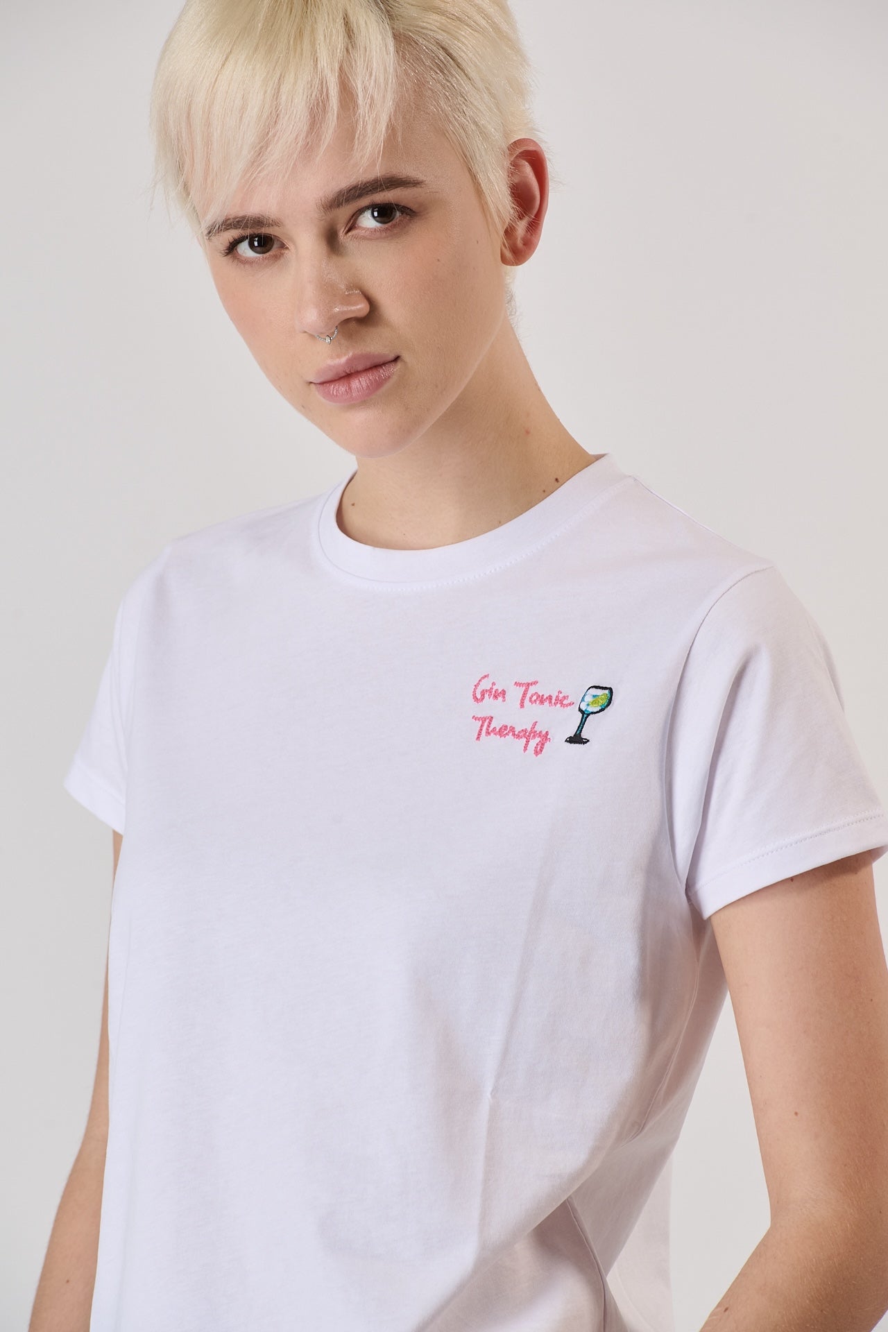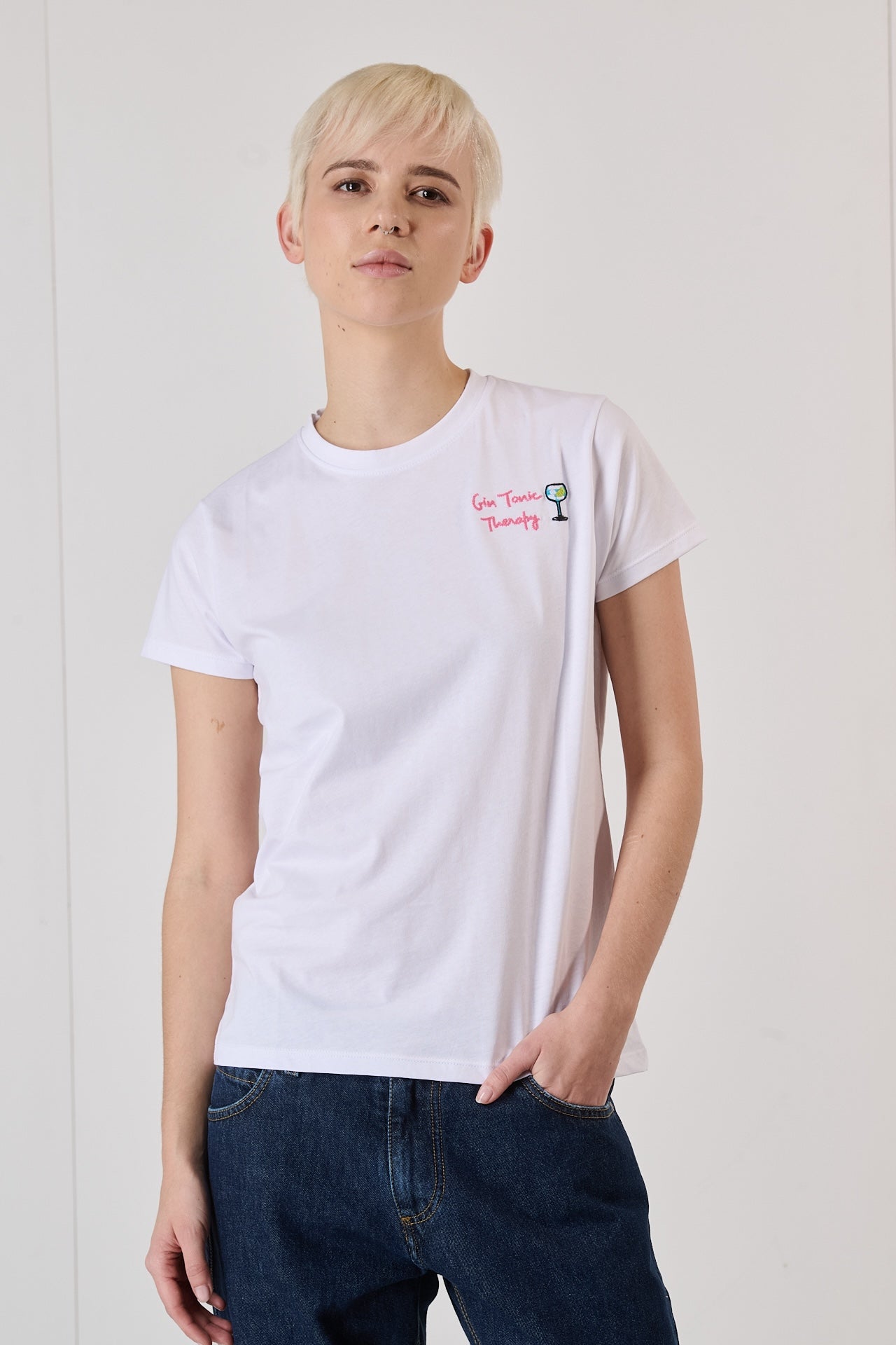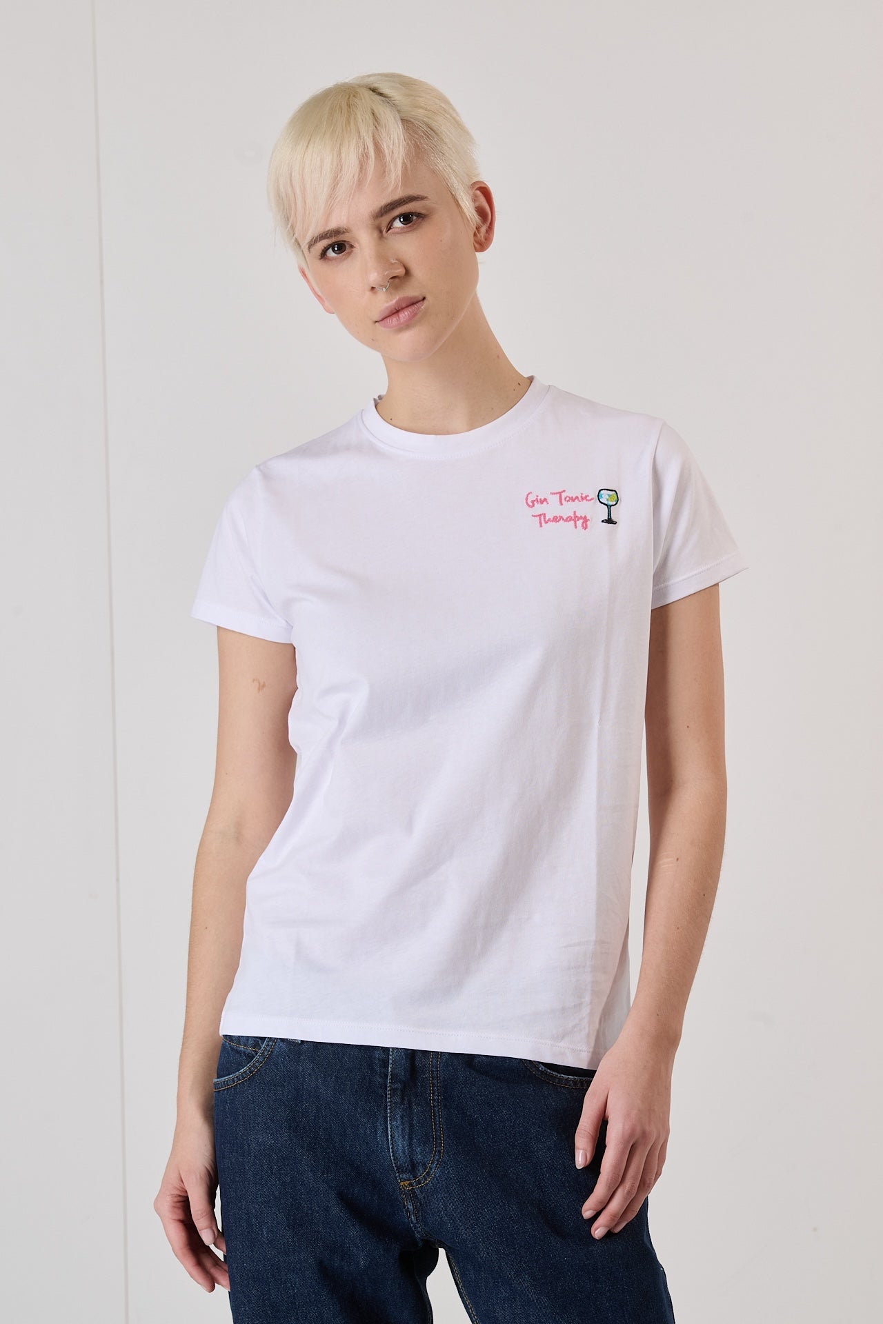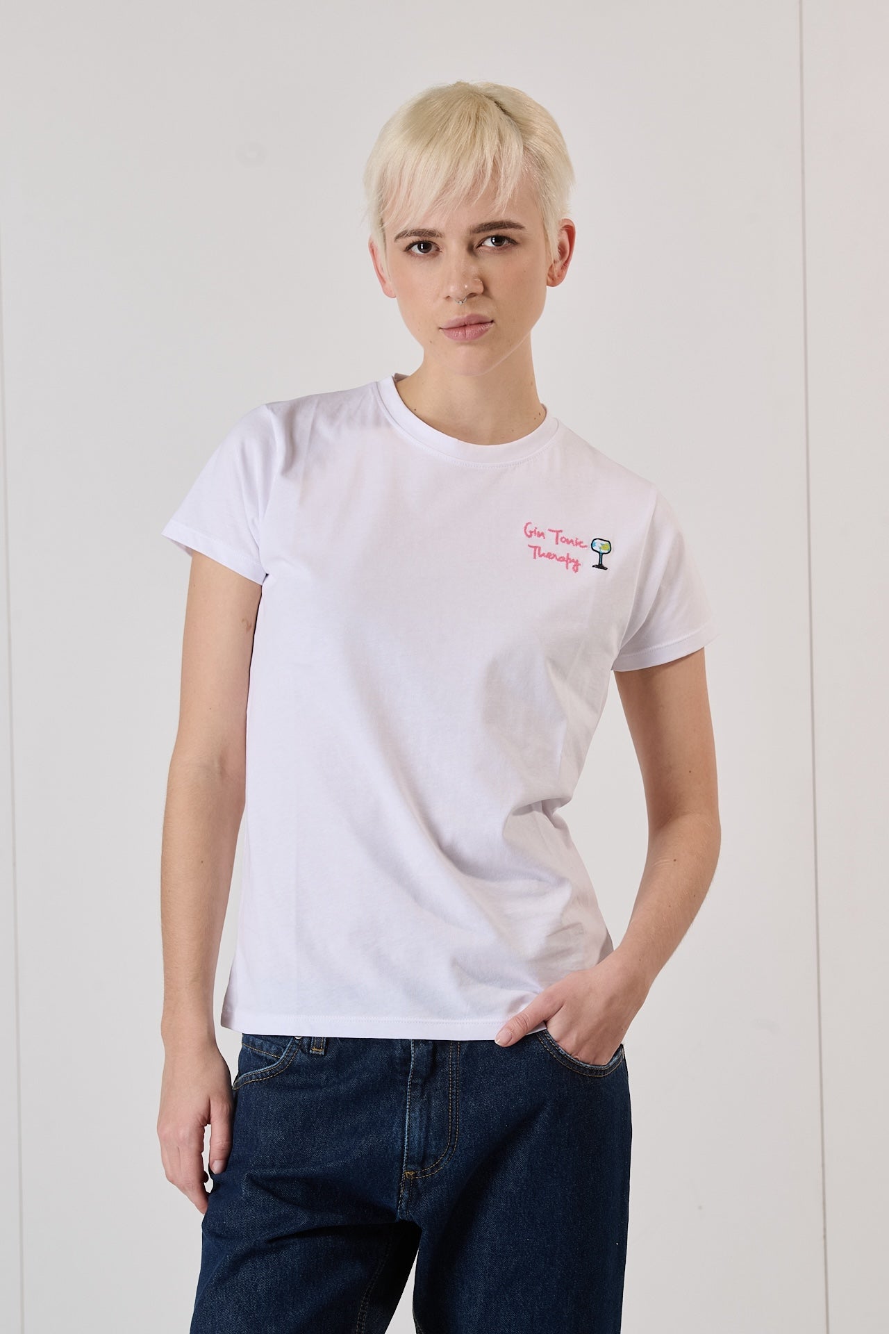 T-shirt Bianca con Ricamo Gin Tonic Therapy