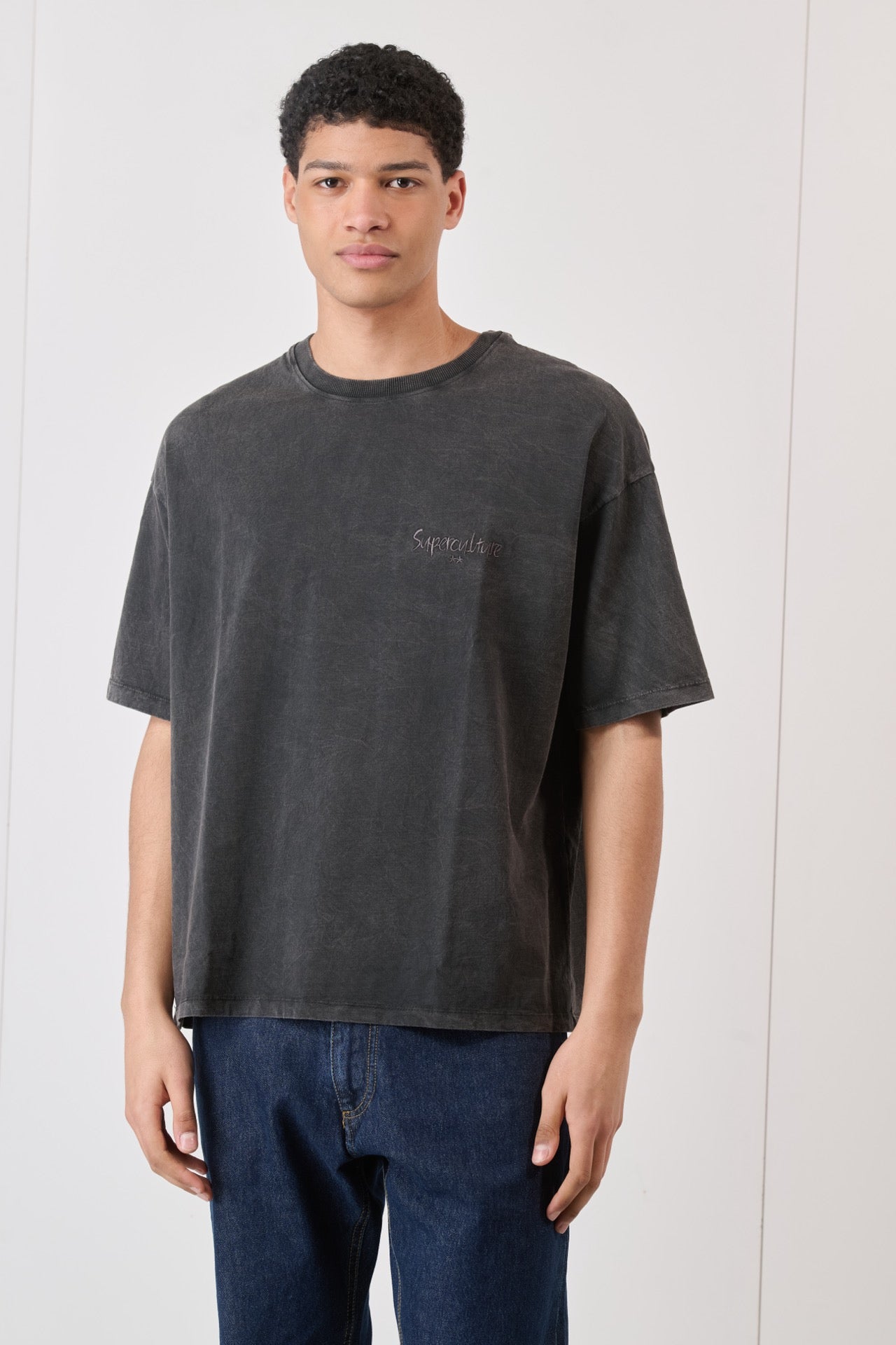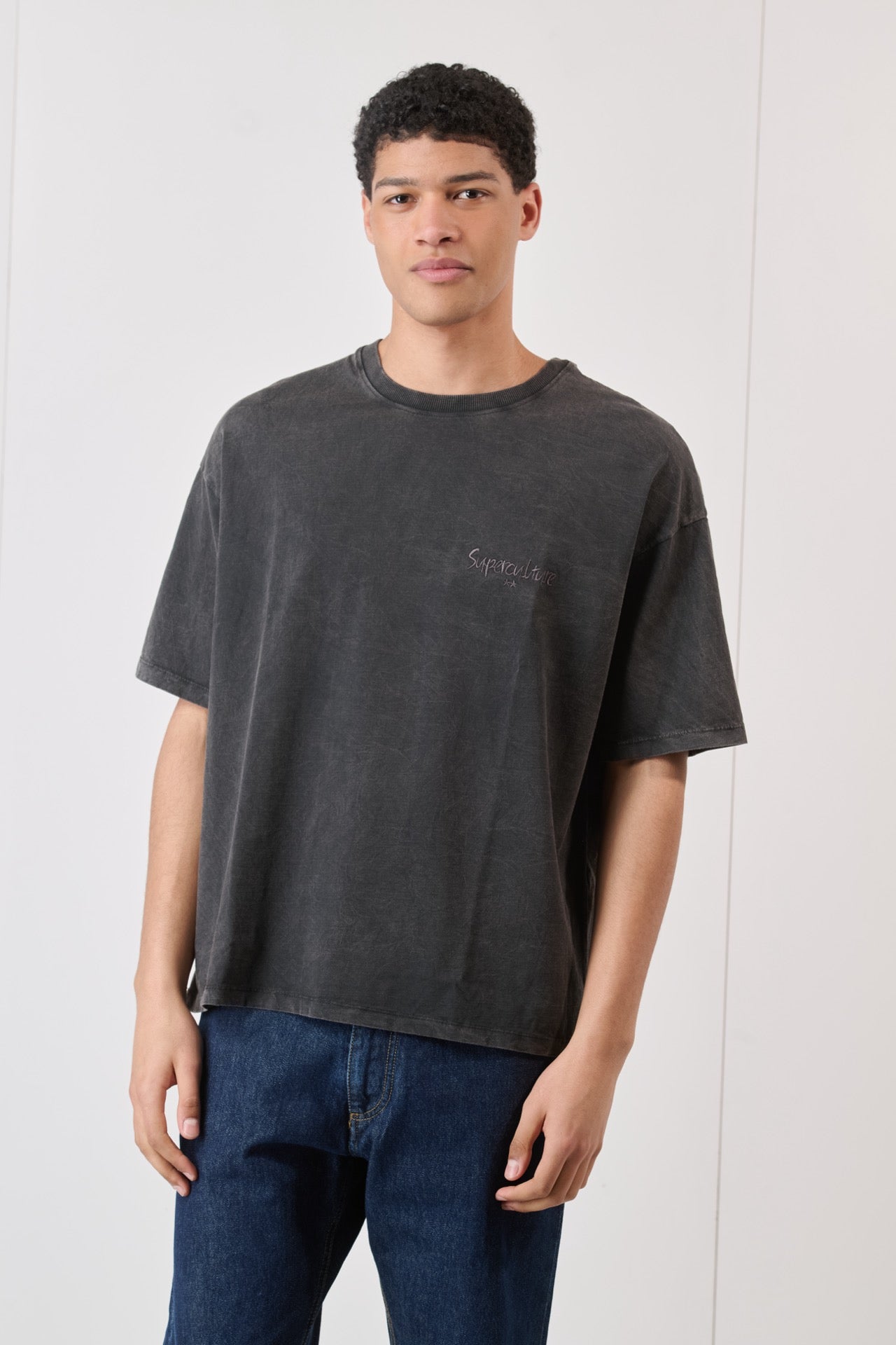 Dallo stile rilassato e di tendenza, la t-shirt boxy fit acid wash con ricamo unisce il fascino del lavaggio vintage con il tocco sofisticato del ricamo. Il fit boxy, leggermente oversize, la rende perfetta per look streetwear contemporanei.