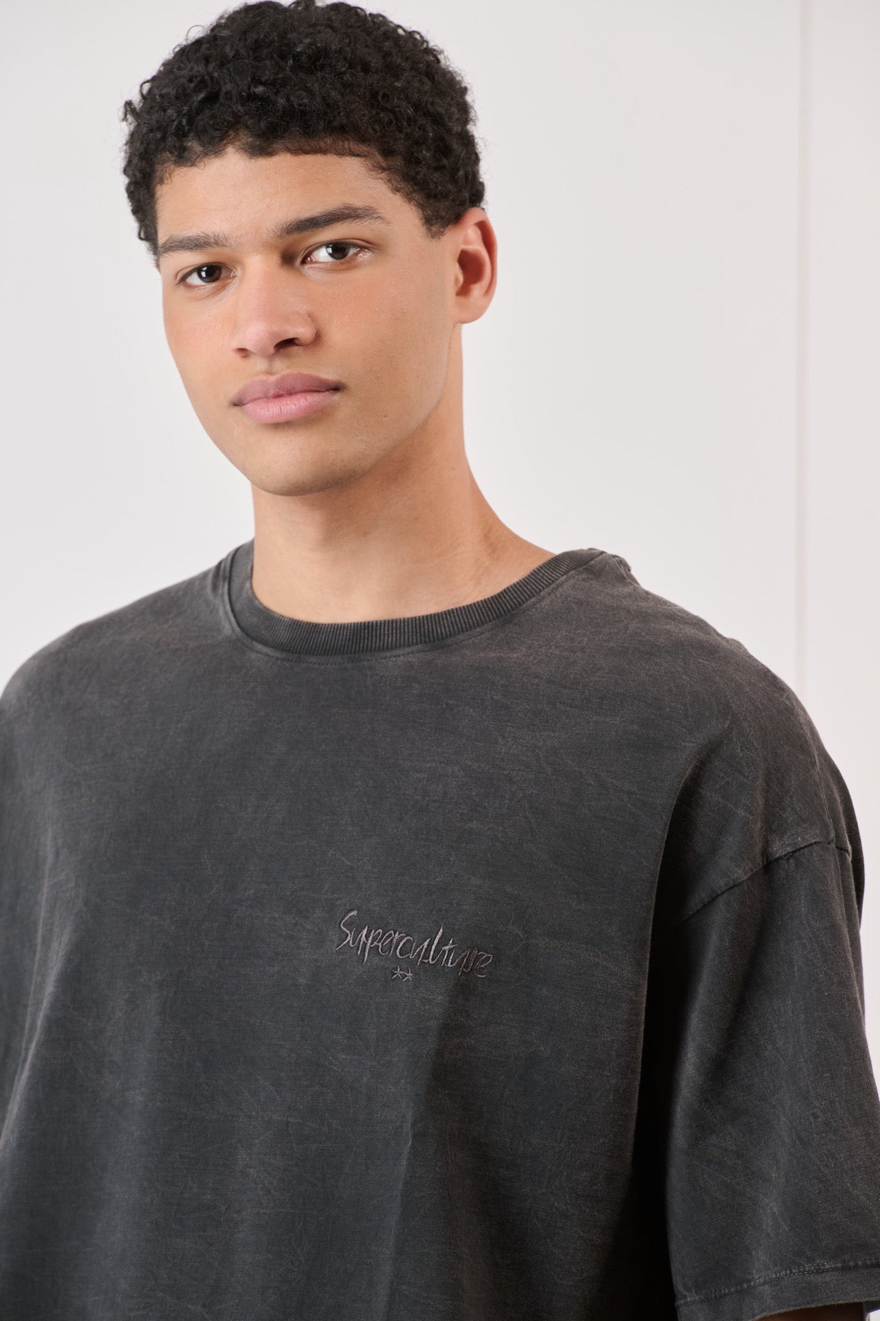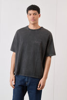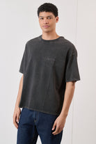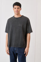 T-shirt Boxy Fit Acid Wash Nero con Ricamo