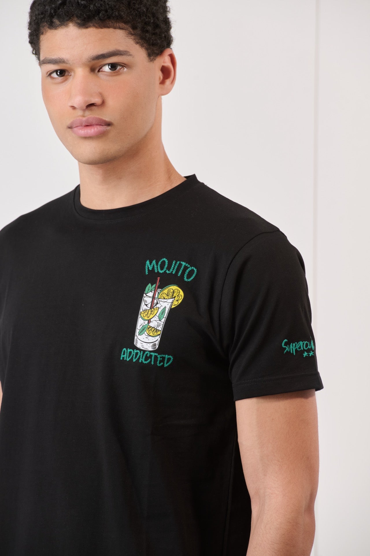 Questa t-shirt con stampa e ricamo Cocktail è pensata per chi ama i dettagli unici e il design ricercato. Il mix tra stampa e ricamo crea un effetto tridimensionale che la rende irresistibile. Realizzata in 100% cotone, è morbida e versatile, perfetta per ogni occasione.