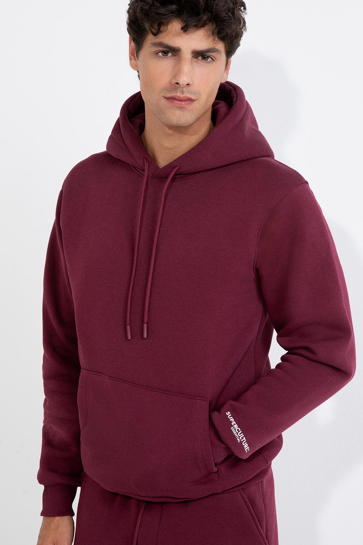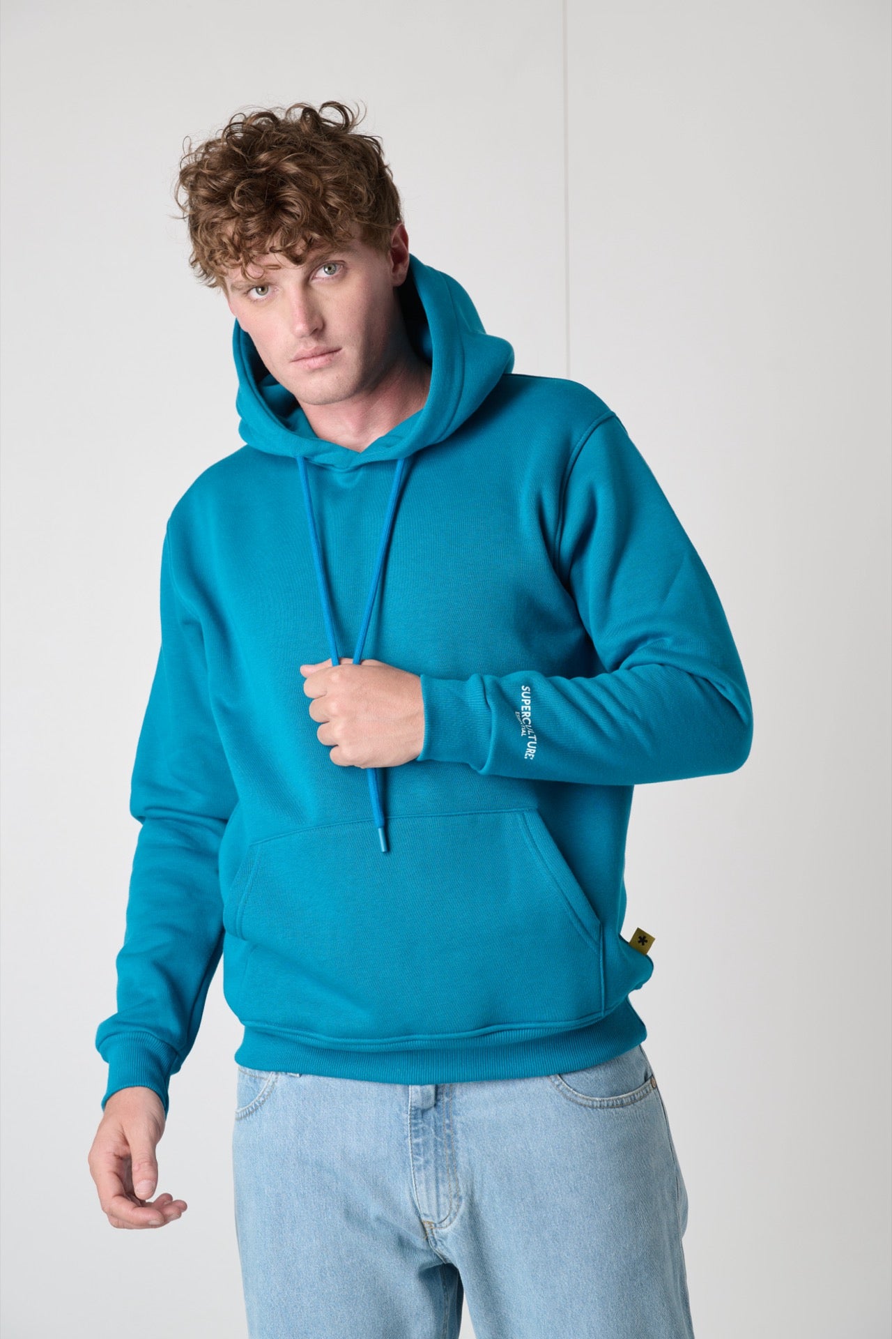 Felpa con cappuccio essenziale, colorata, semplice e super confortevole, grazie alla sua composizione in cotone.