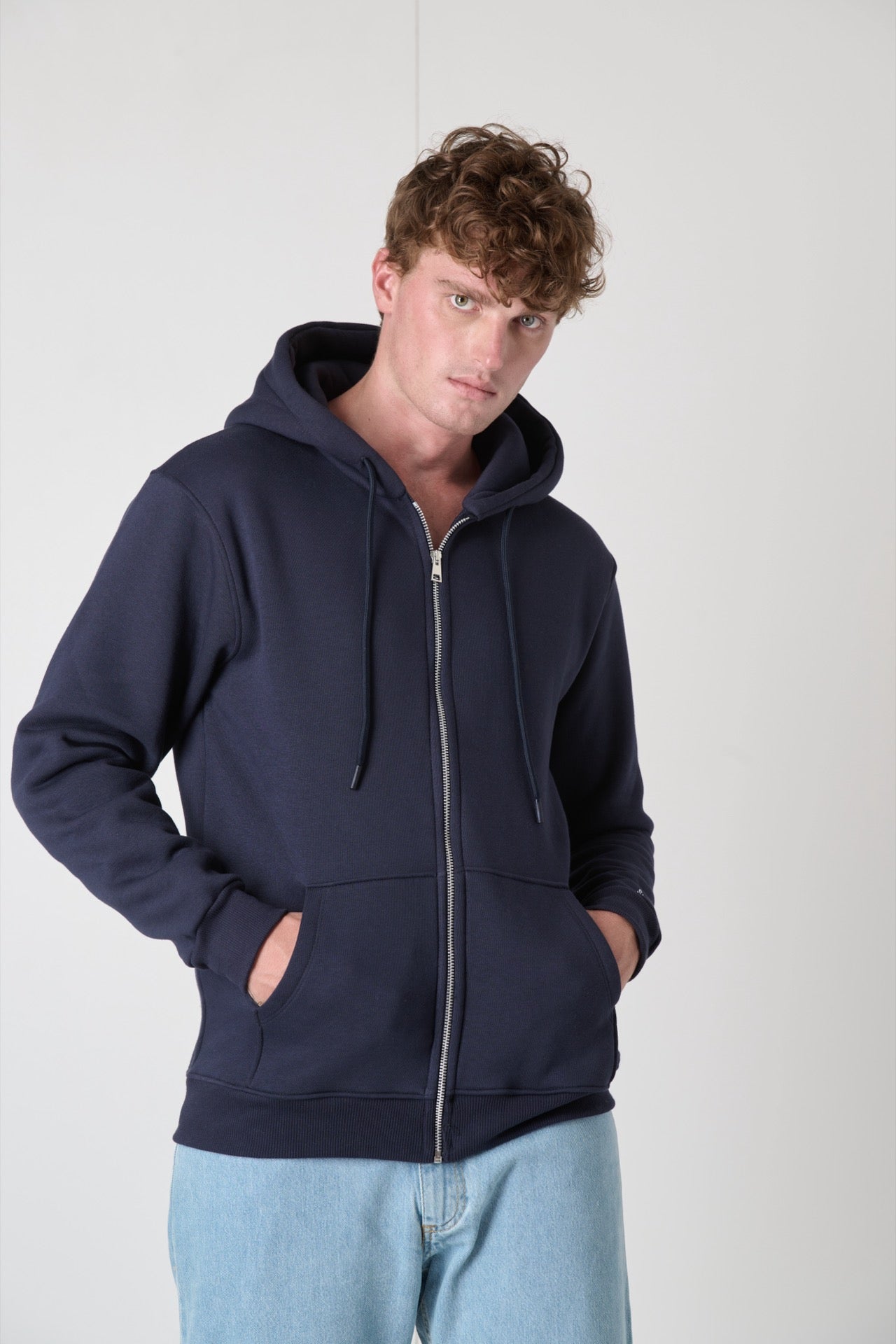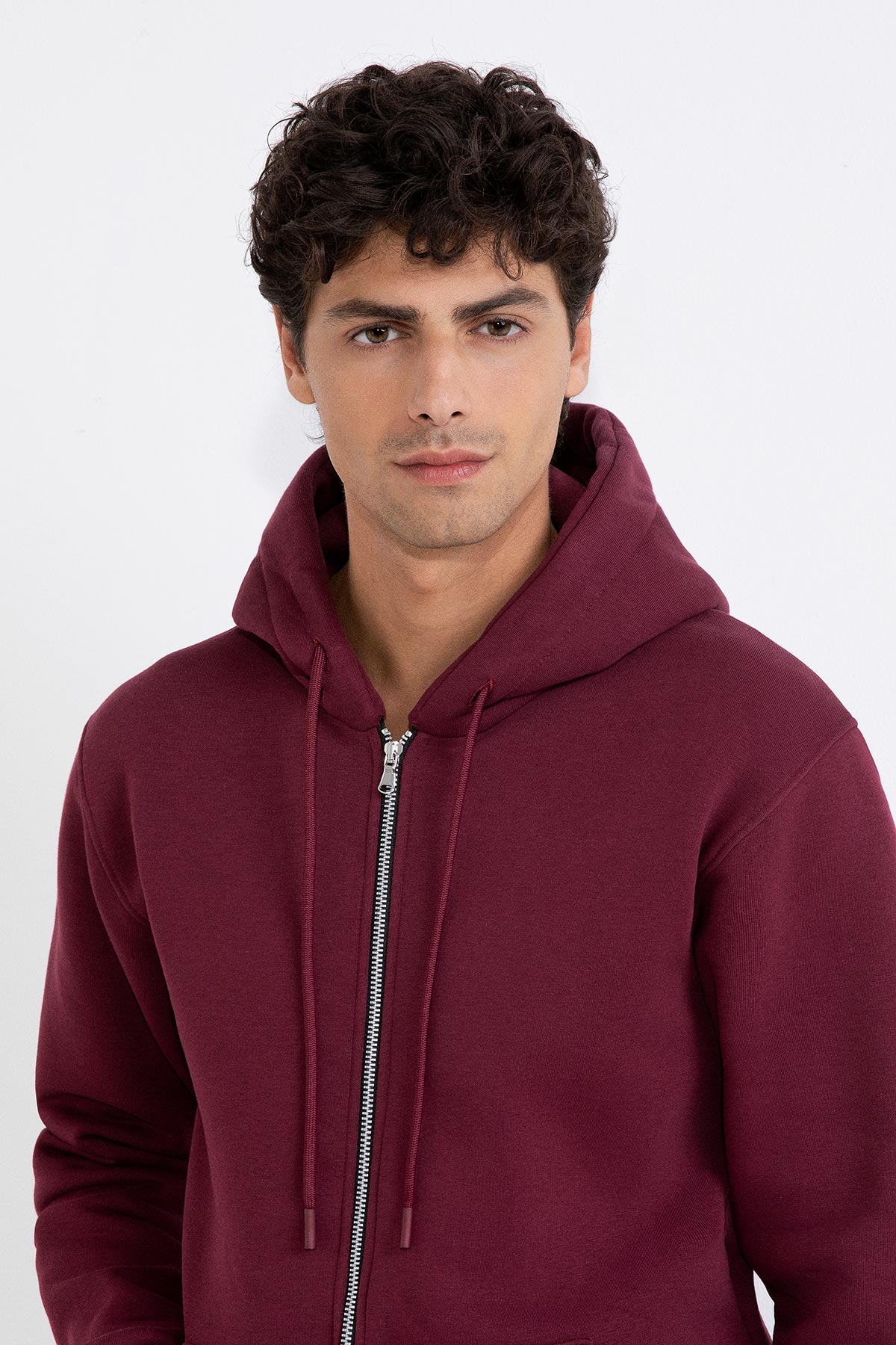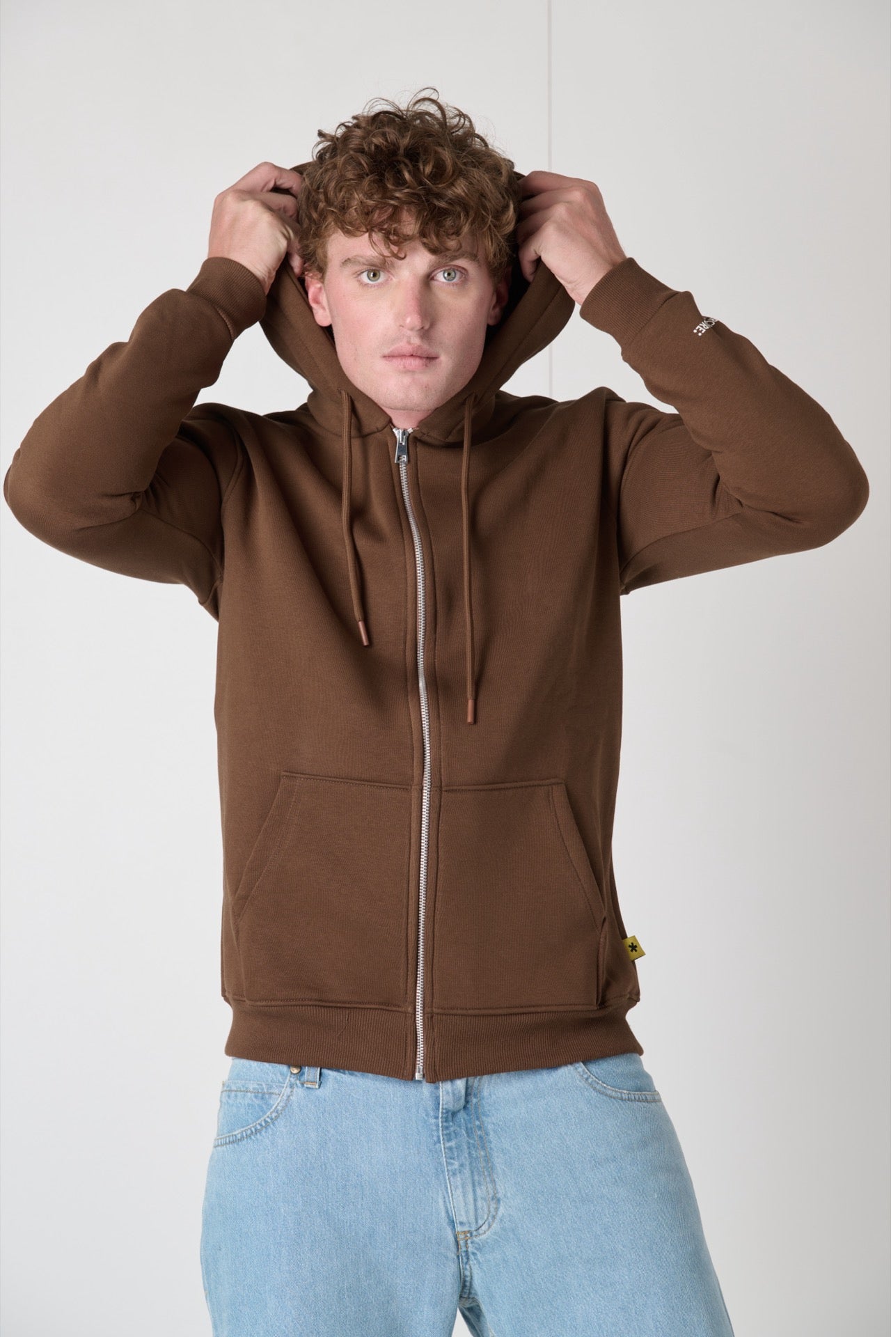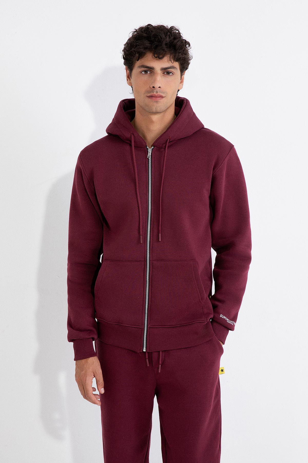 Felpa con zip e cappuccio essenziale, colorata, semplice e super confortevole, grazie alla sua composizione in cotone.