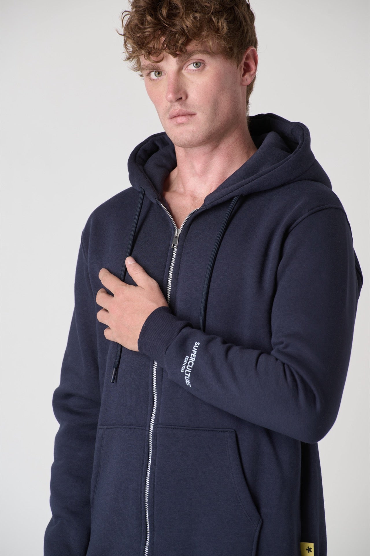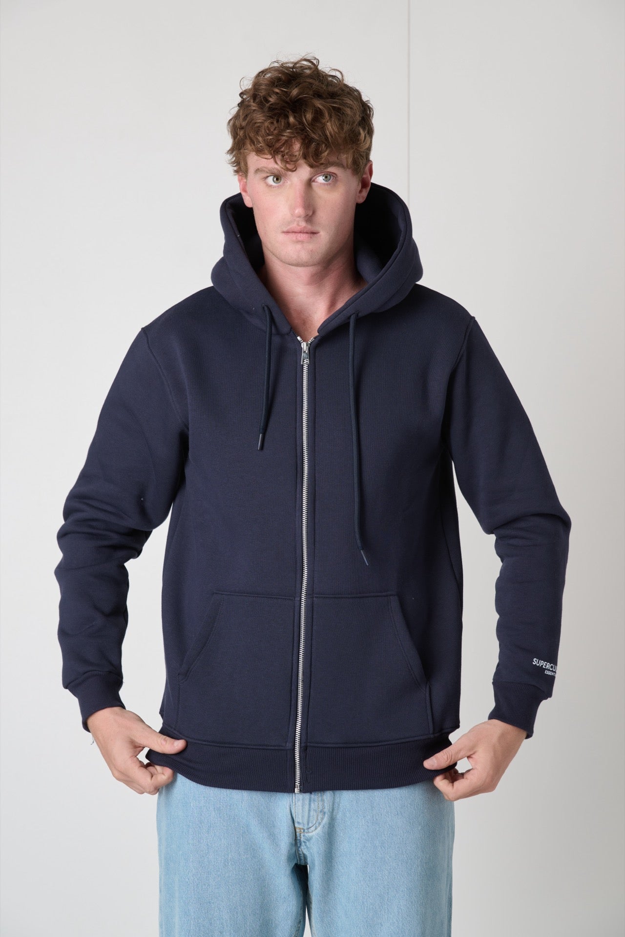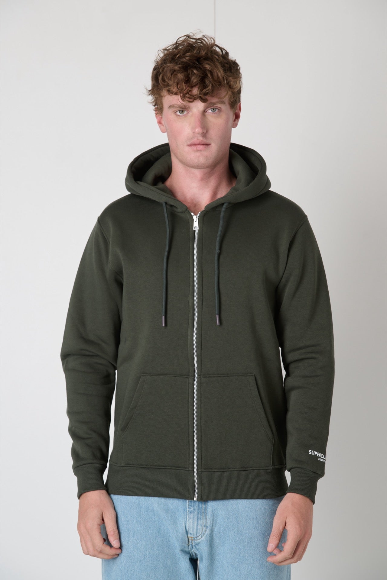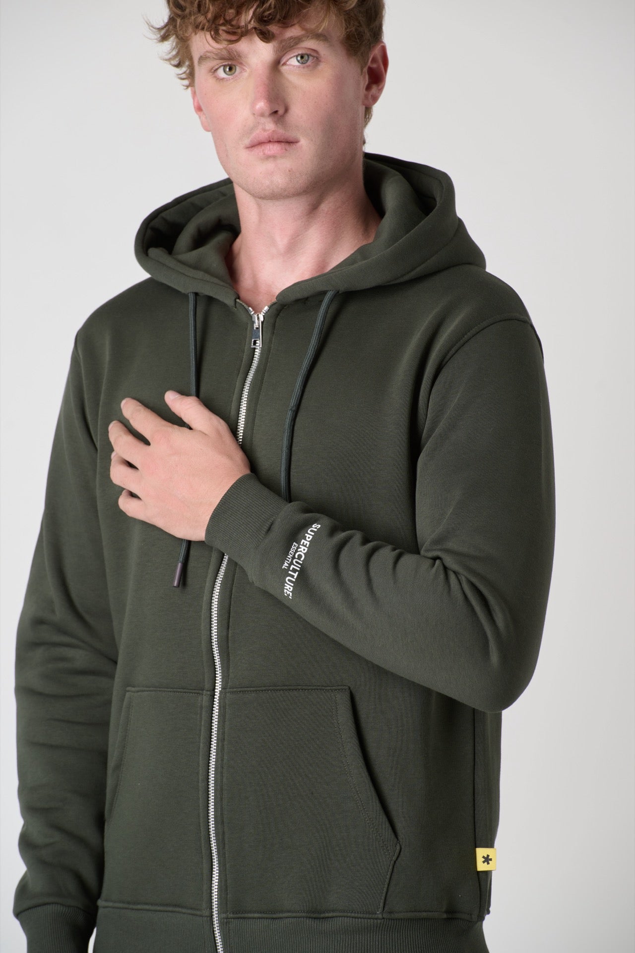 Felpa con zip e cappuccio essenziale, colorata, semplice e super confortevole, grazie alla sua composizione in cotone.