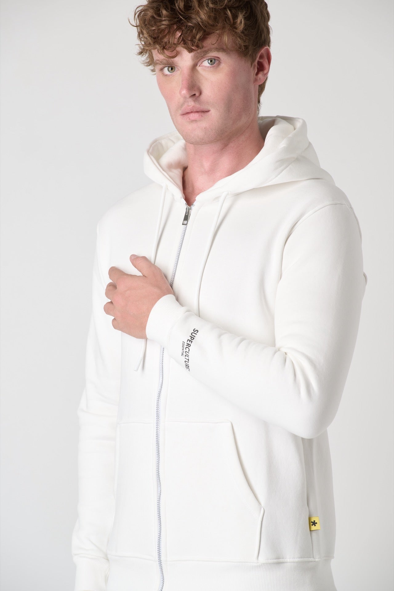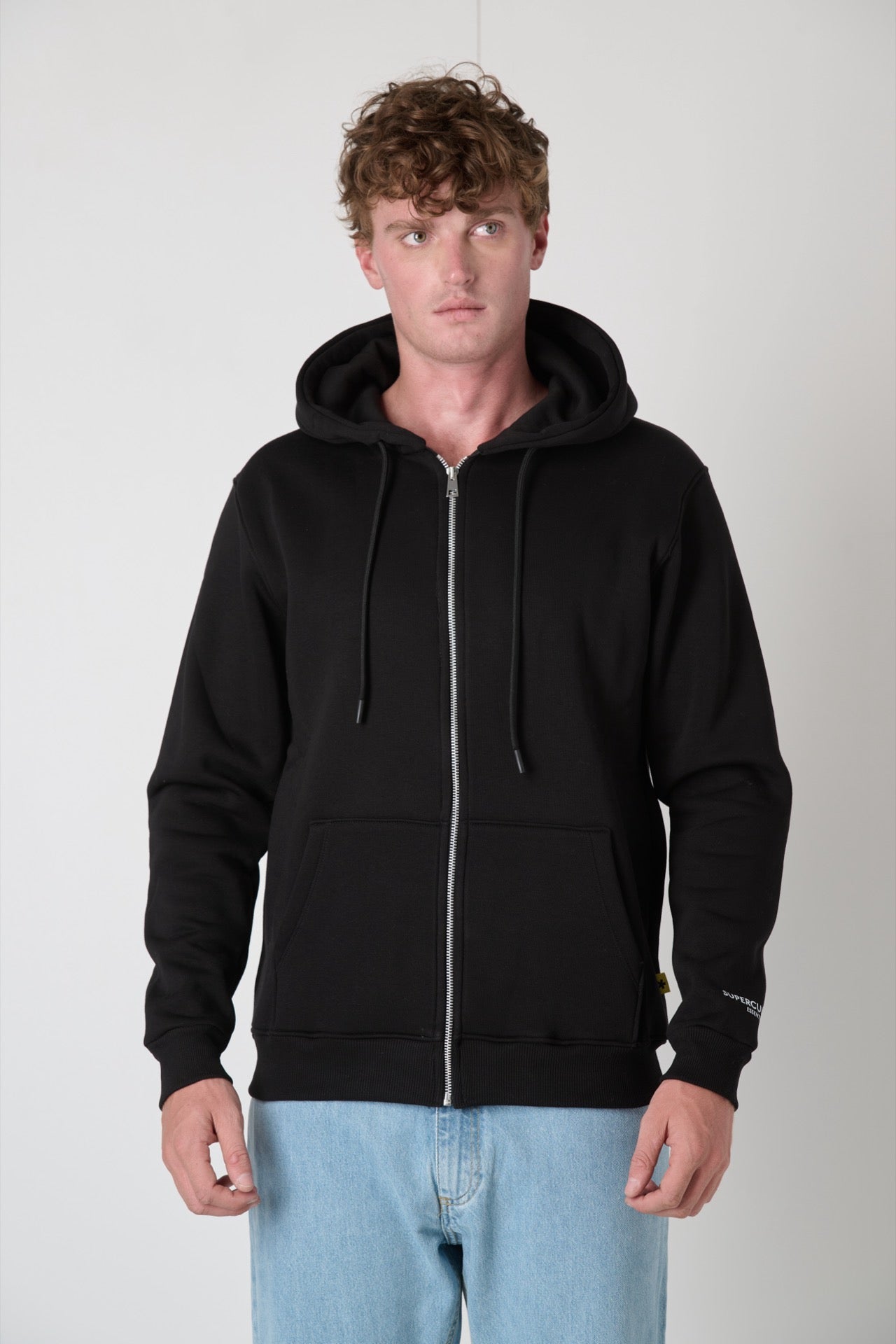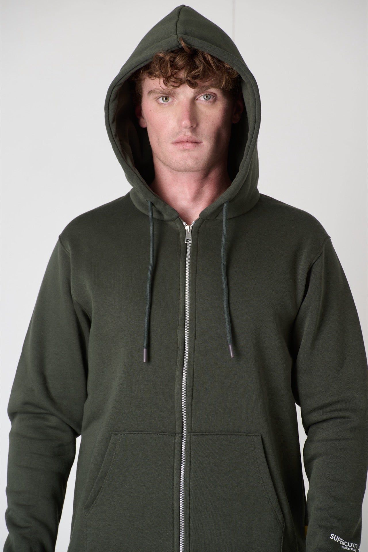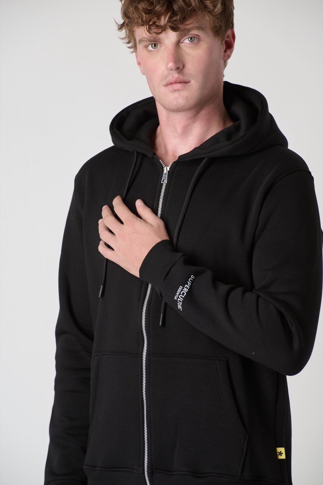 Felpa con zip e cappuccio essenziale, colorata, semplice e super confortevole, grazie alla sua composizione in cotone.